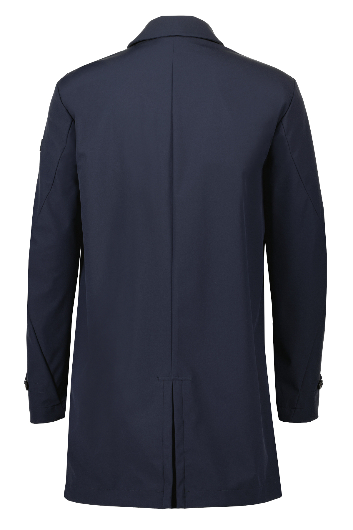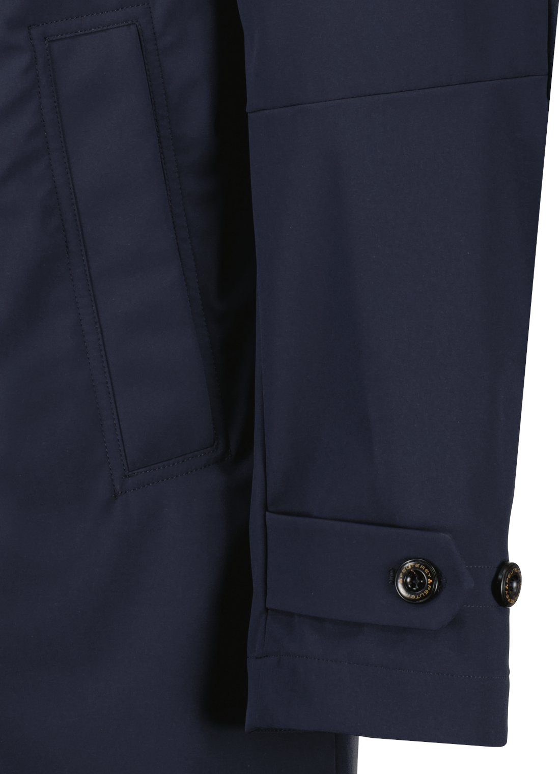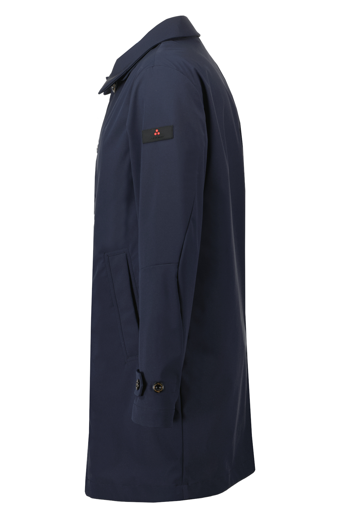 Donkerblauwe jas voor heren model Garretson van Peuterey. Deze trenchcoat is gemaakt van polyester microvezel nylon poplin, heeft een matte textuur, heeft twee grote steekzakken en knoop- en knoopsgatstrikken onderaan de mouw, heeft een transparant membraan aan de achterkant dat de stof waterdicht en waterafstotend maakt.