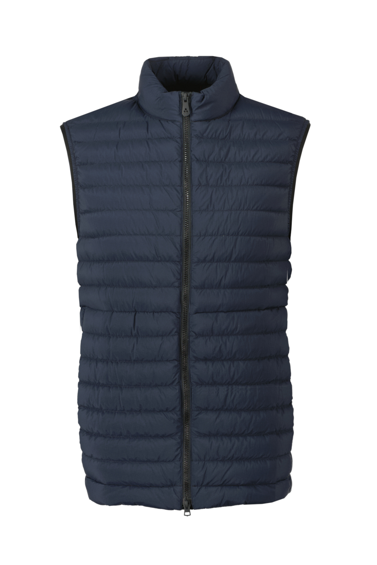 Donkerblauwe bodywarmer voor heren van Peuterey. Licht gewatteerd PrimaLoft-vest gemaakt van ultralicht 20 denier nylon, met semi-glanzende textuur. Opstaande hals met aangebrachte logostrook, dual-pull, rits in contrasterende kleur en zijzakken met drukknopen. Vakkundig gemaakte sportkleding voor een dynamische en veelzijdige look, een kledingstuk dat alleen of onder een jas gedragen kan worden. Waterdicht en donsdicht.