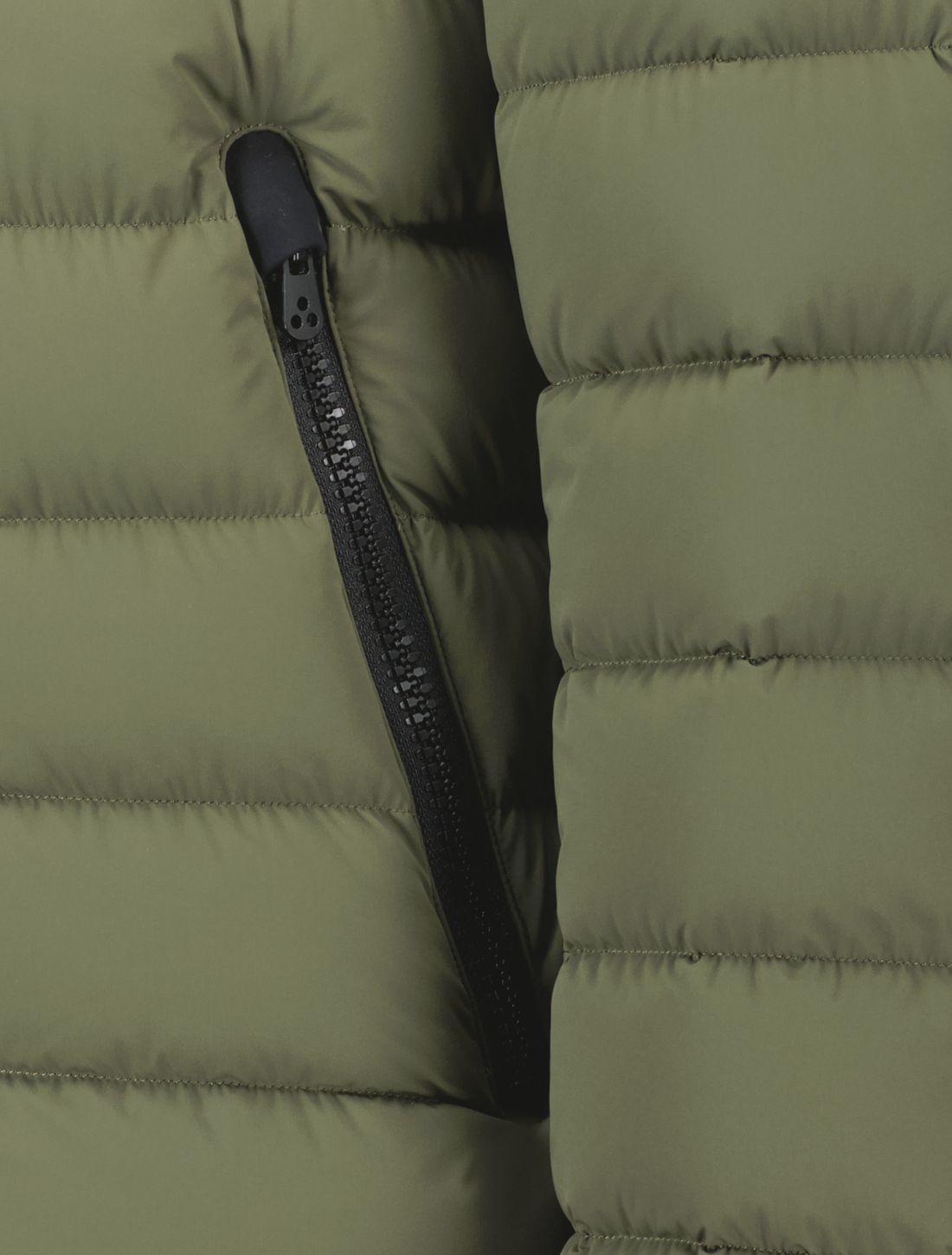 Donkergroene heren jas van Peuterey met capuchon. Een 20 denier ultra lichtgewicht nylon donsjack met een matte afwerking, met een gewicht van slechts 40 gram. De trekkoorden rond de afneembare capuchon en de elastische polsen zorgen ervoor dat dit model naar het lichaam kan worden gemodelleerd, waardoor het thermisch comfort toeneemt. Het essentiële ontwerp bevat dubbele normale stiksels. Hoge kraag afgewerkt met een logostrook, ritsvak en dubbele, gegoten hoofdritssluiting. Alle details zijn zwart. Handig binnenvak voor je essentials. Helder en dynamisch, een nieuwe klassieker in stadssportkleding, Peuterey-stijl. Het kledingstuk is donsdicht en waterafstotend.