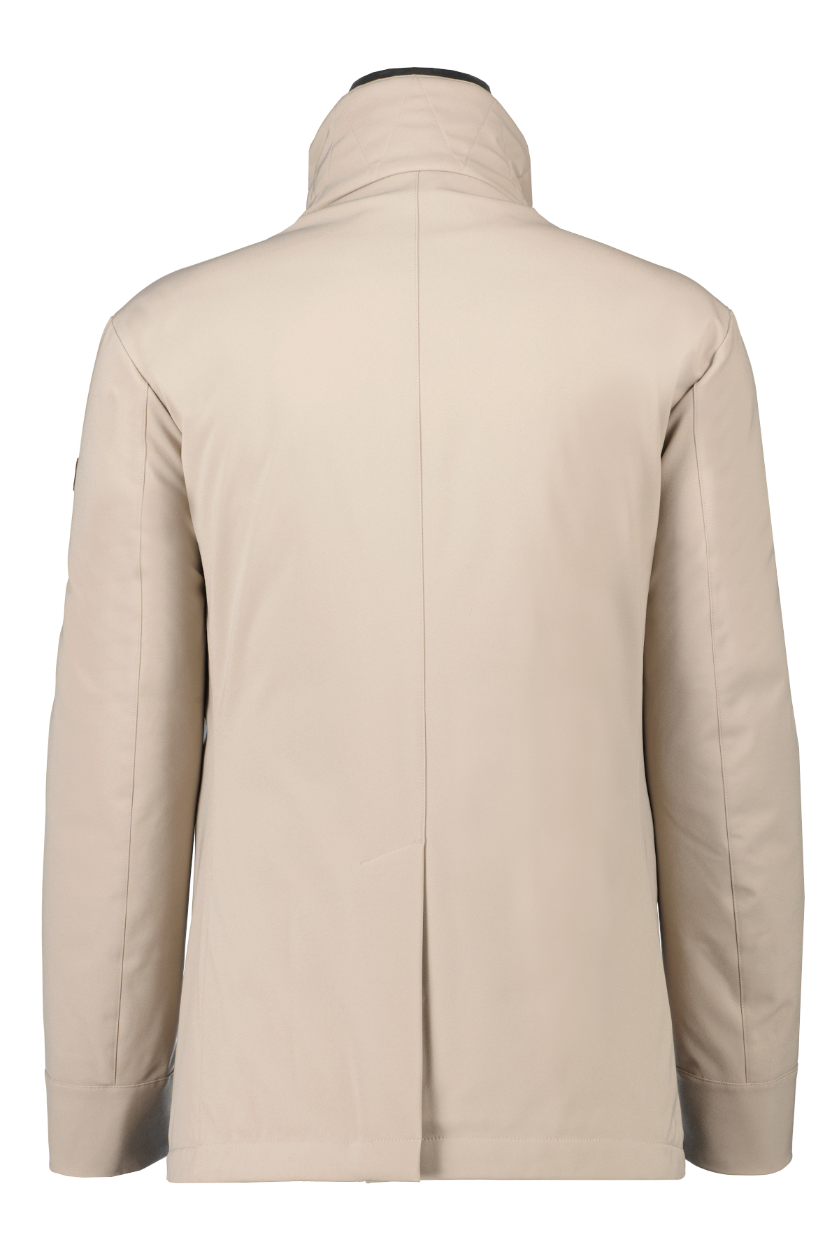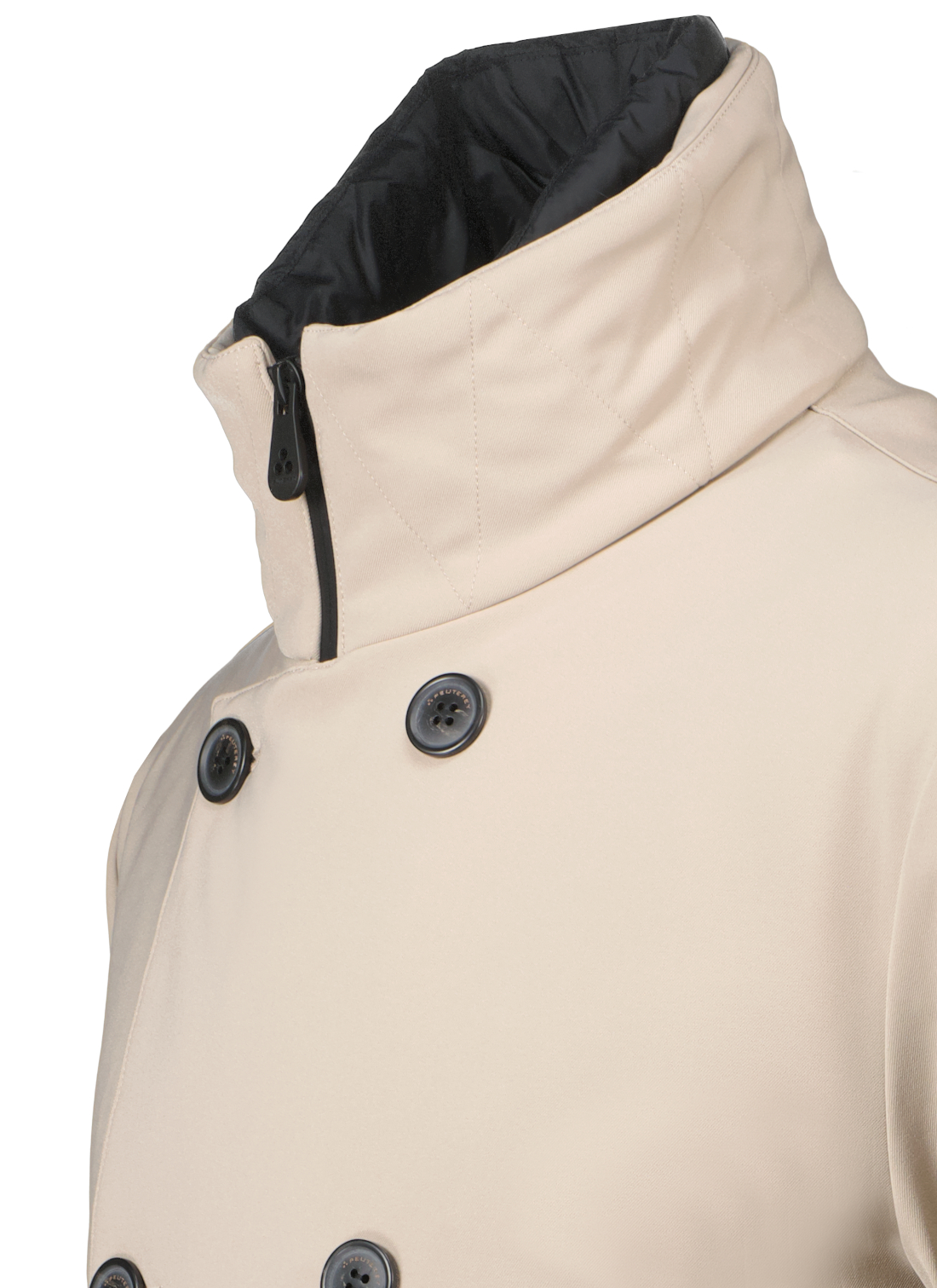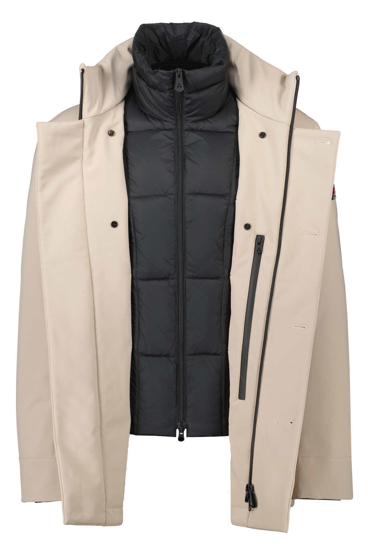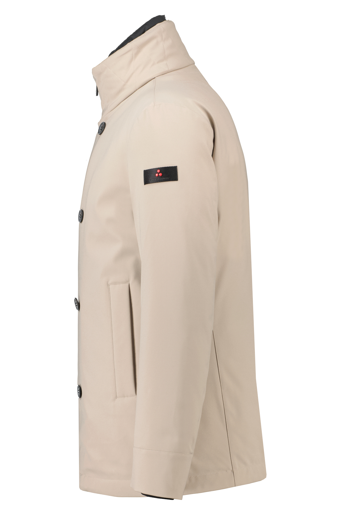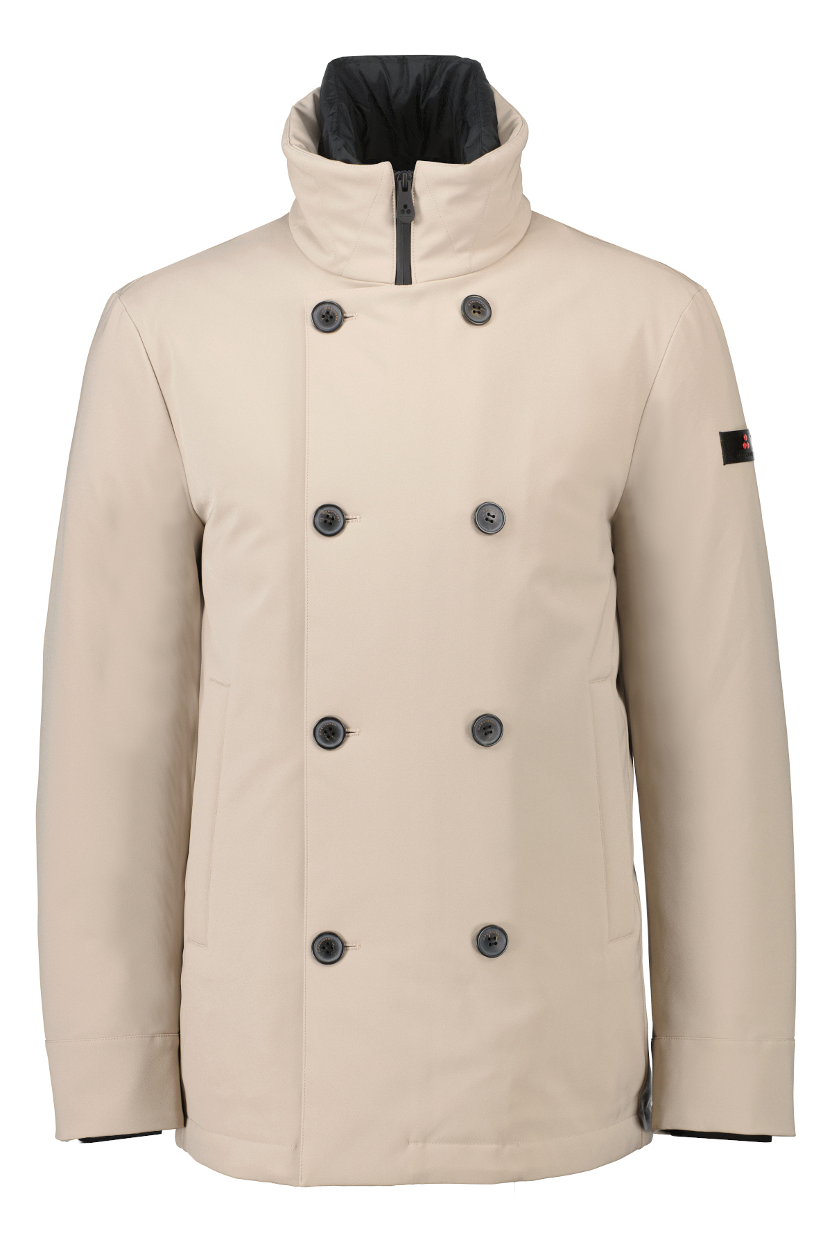 Taupe jas voor heren model Militao van Peuterey. Jack van gerecycled stretchnylon met twill-textuur, met een strakke, matte uitstraling. Knoop met dubbele rij knopen en verborgen dubbele ritssluiting, hoge kraag, twee grote zijzakken. De essentiële lijnen van de jas herinterpreteren en actualiseren een klassiek en tijdloos herenjack op een stedelijke manier. Het biedt extra bescherming tegen de kou van het winterseizoen, dankzij de natuurlijke donsvulling; met zijn afneembare binnenslab is het een must-have item dat nooit uit de mode raakt.
