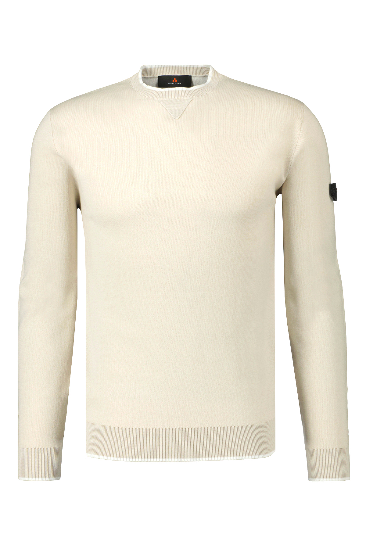 Beige trui voor heren model Rubjerg van Peuterey. Deze gebreide trui is gemaakt van een mix van katoen en nylon, heeft lange mouwen, een ronde hals, geribbelde manchetten en zoom. Een veelzijdig en comfortabel kledingstuk. Heeft het Peuterey-logolabel op de linkermouw, vastgemaakt met twee knopen.
