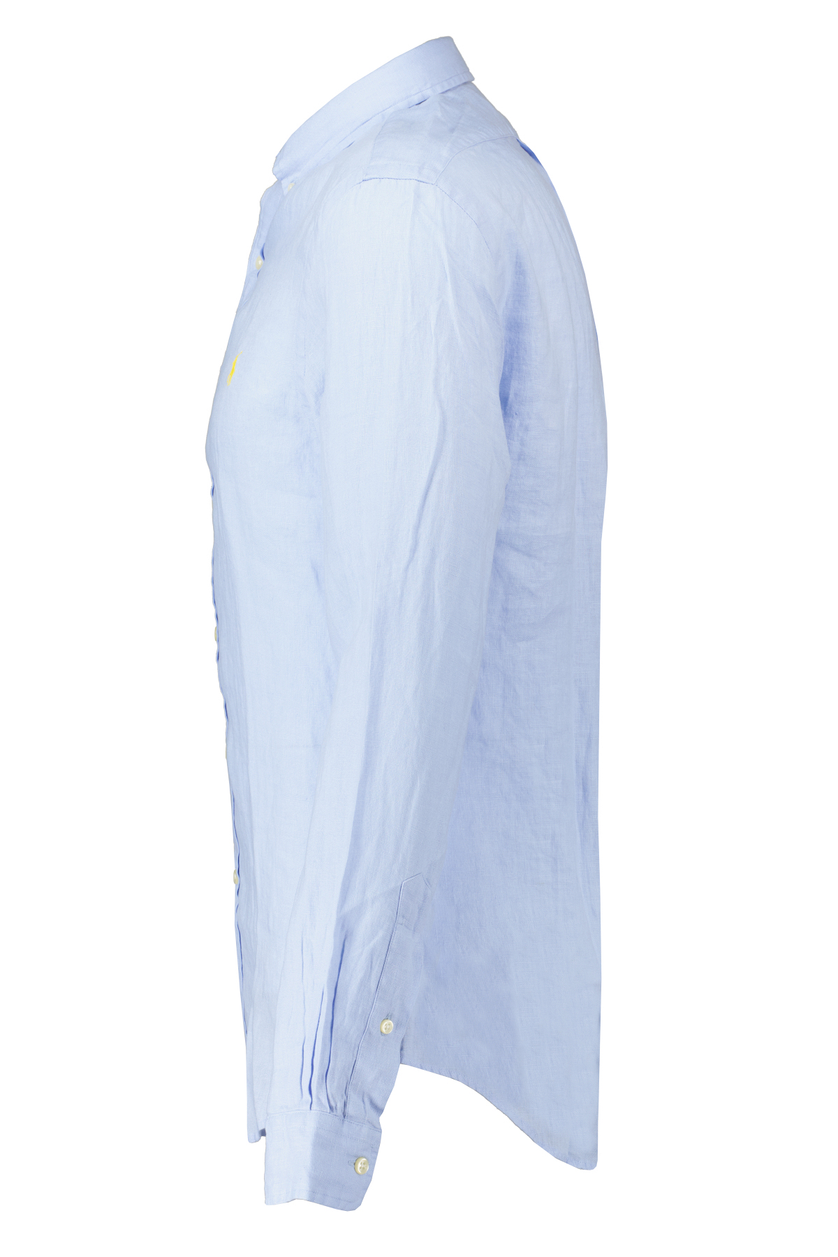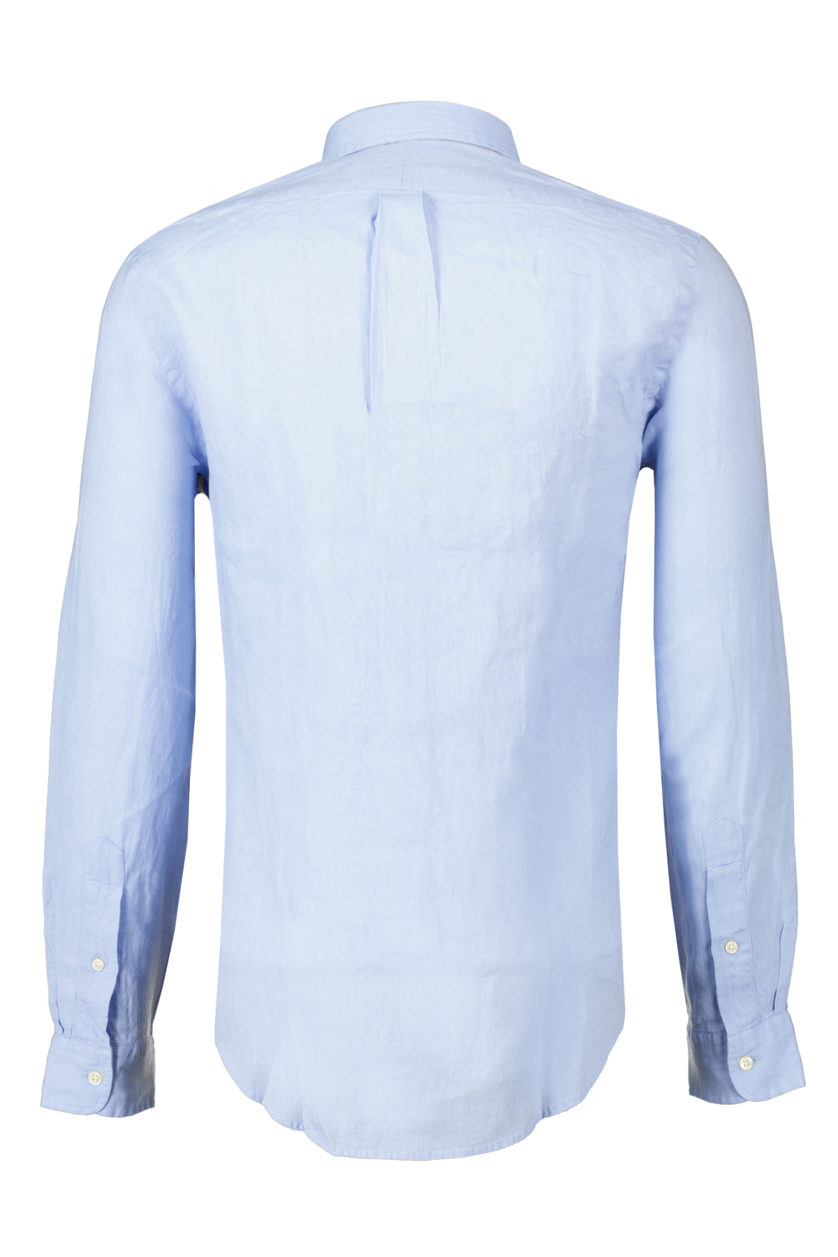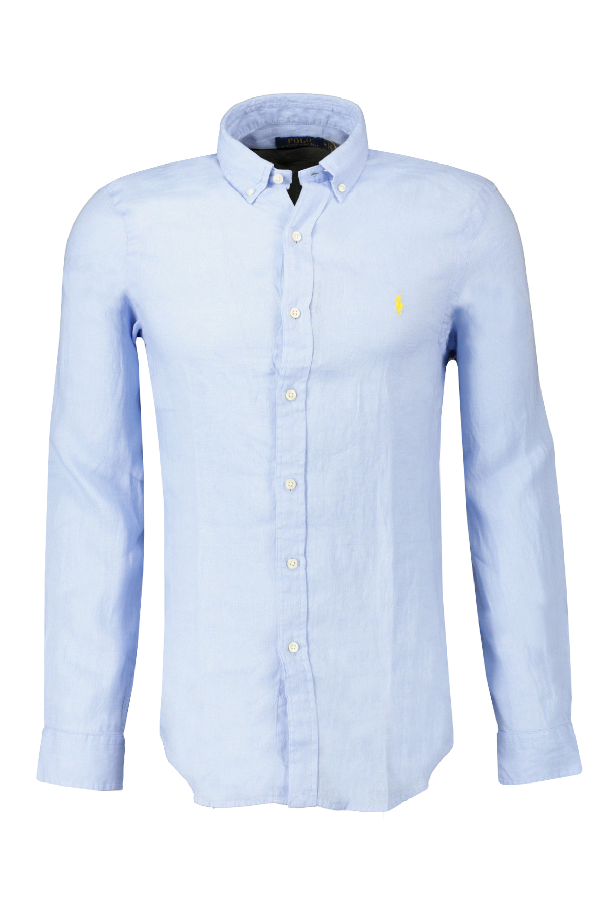 Blauw overhemd voor heren van Ralph Lauren. Geïnspireerd door twee van de iconen uit de Ralph Lauren Polo collectie, combineert deze button-down kraag de look van een Oxford-overhemd met het comfort en gemak van de 100% linnen stof. Lange mouwen met manchetten met knopen. Het gespleten rugpand met stolpplooi zorgt voor een comfortabele pasvorm en meer bewegingsvrijheid. De kenmerkende geborduurde pony op de linkerborst.