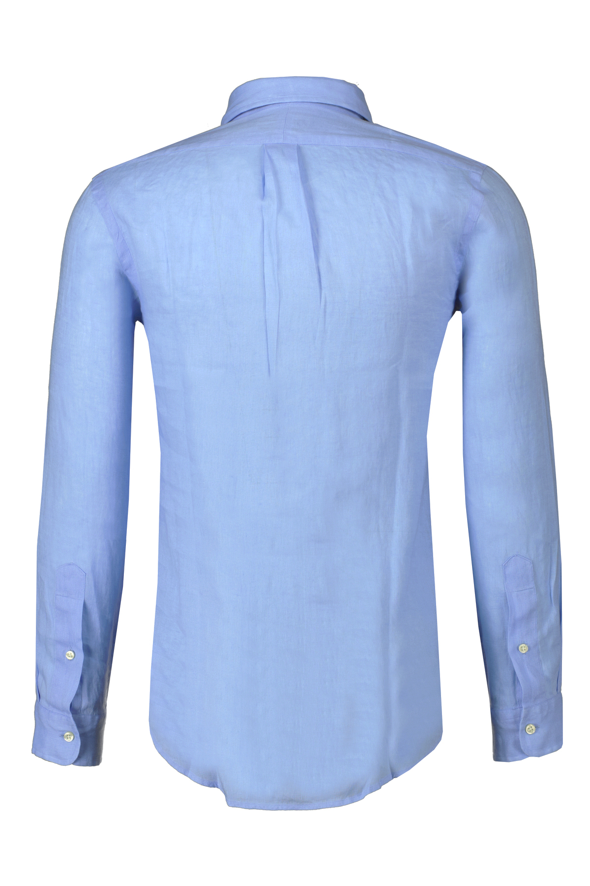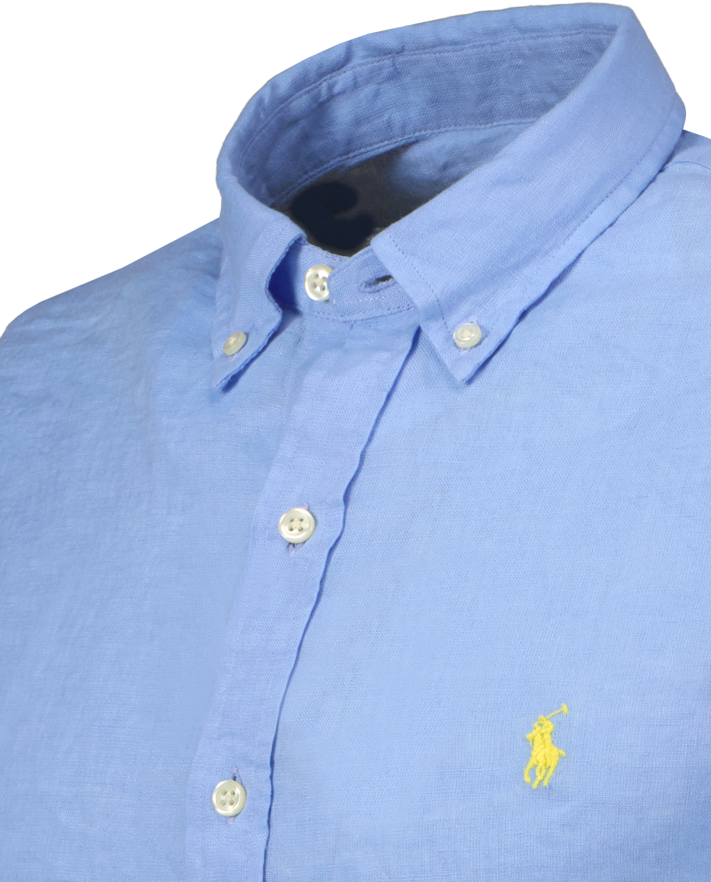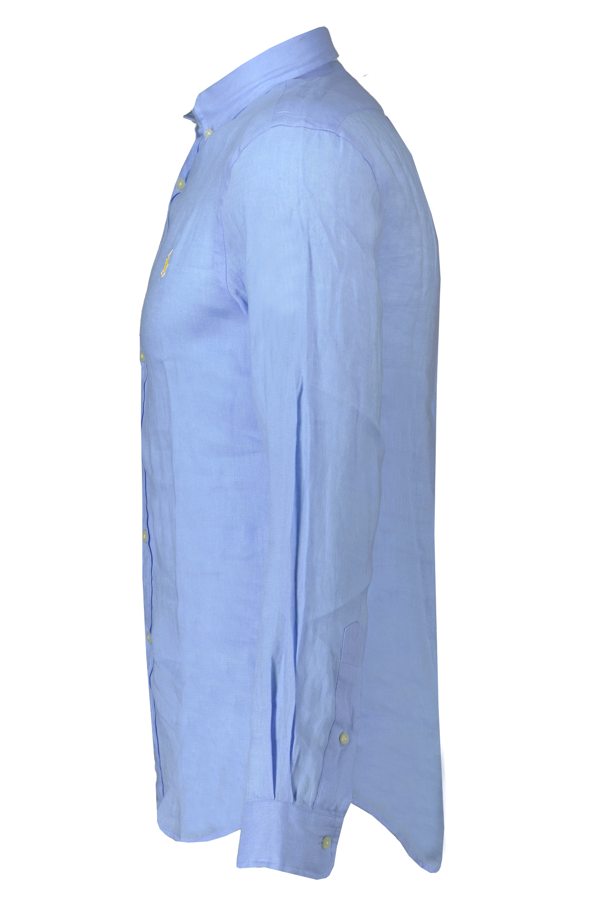 Lichtblauw linnen overhemd voor heren van Ralph Lauren. Geïnspireerd door twee van de iconen uit de Ralph Lauren Polo collectie, combineert deze button-down kraag de look van een Oxford-overhemd met het comfort en gemak van de 100% linnen stof. Lange mouwen met manchetten met knopen. Het gespleten rugpand met stolpplooi zorgt voor een comfortabele pasvorm en meer bewegingsvrijheid. De kenmerkende geborduurde pony op de linkerborst.
