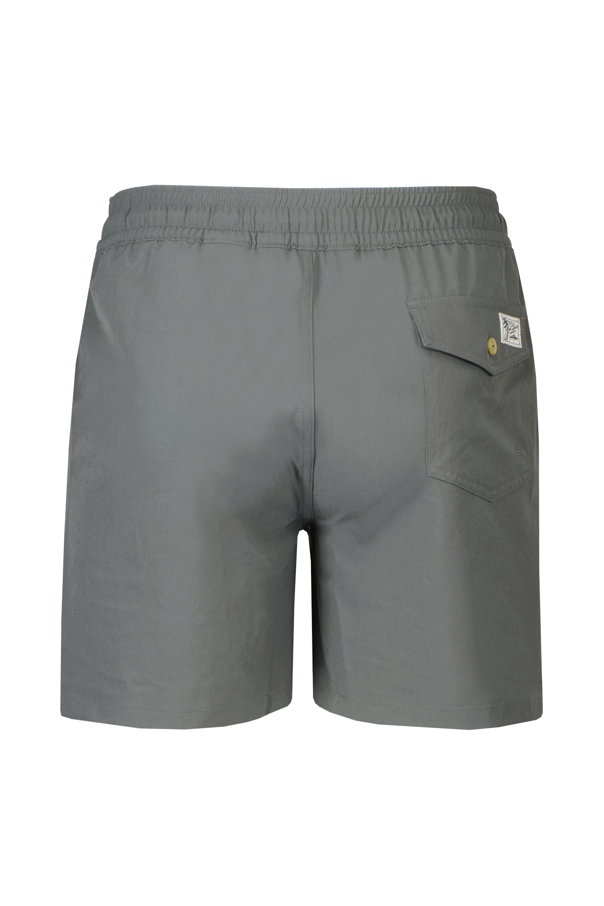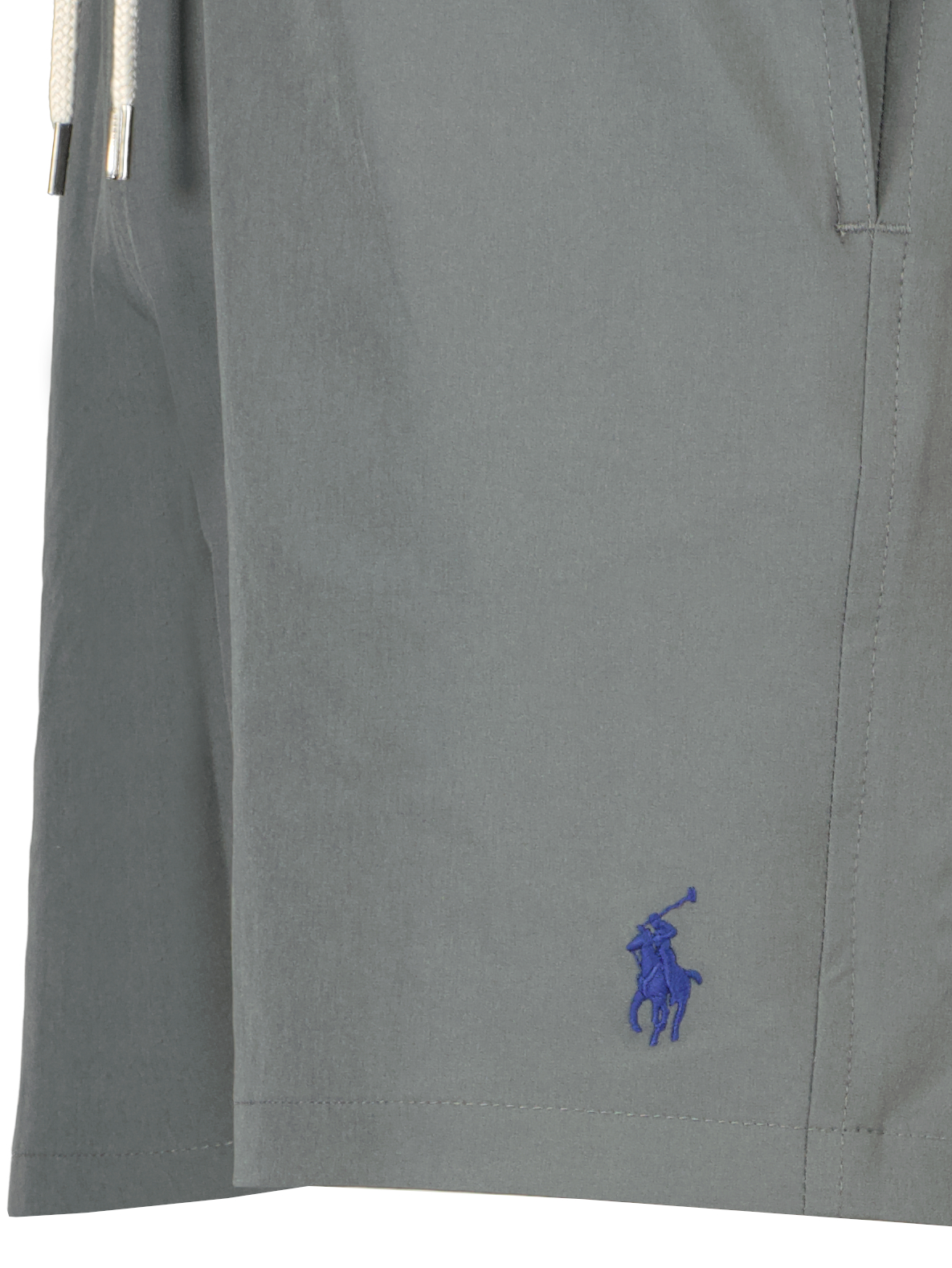 Grijze zwemshort voor heren van Ralph Lauren. Dit model heeft een elastische tailleband met trekkoord, zakken in de zijnaden, een achterzak met knoop en Swimwear label, mesh binnenbroek voor extra ondersteuning en de pony geborduurd op de linkerzoom.