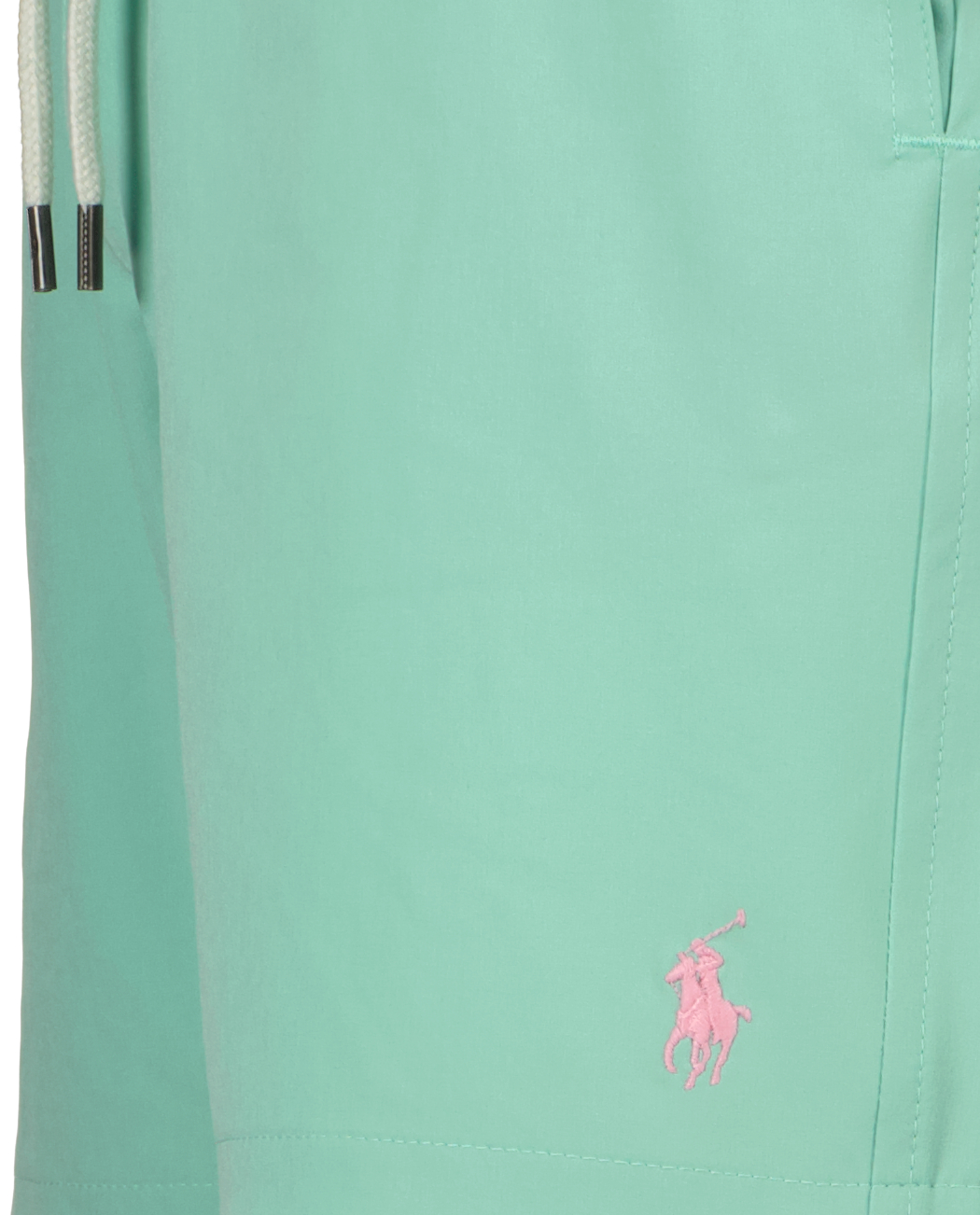 Lichtgroene zwemshort voor heren van Ralph Lauren. Dit model heeft een elastische tailleband met trekkoord, zakken in de zijnaden, een achterzak met knoop en Swimwear label, mesh binnenbroek voor extra ondersteuning en de pony geborduurd op de linkerzoom.