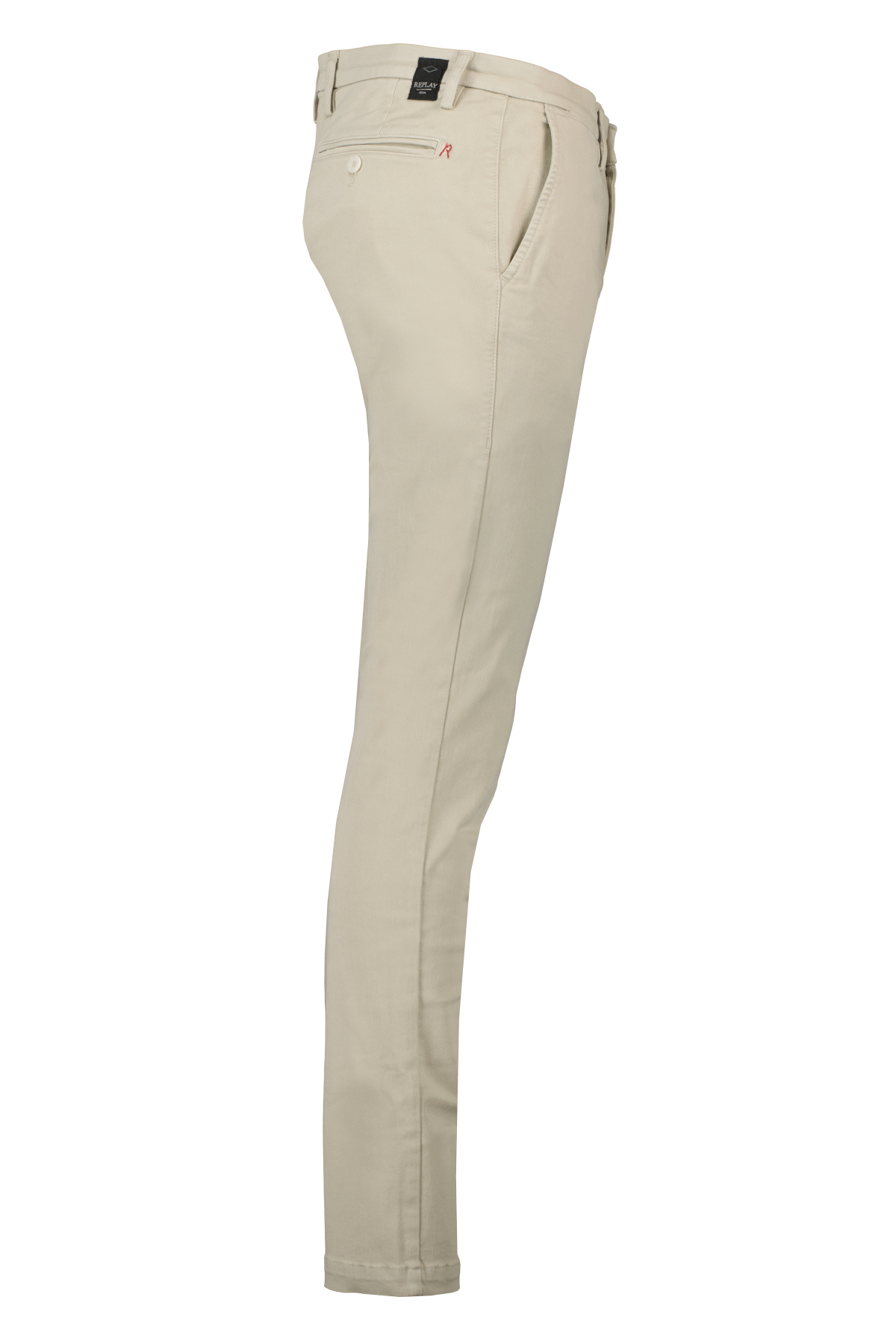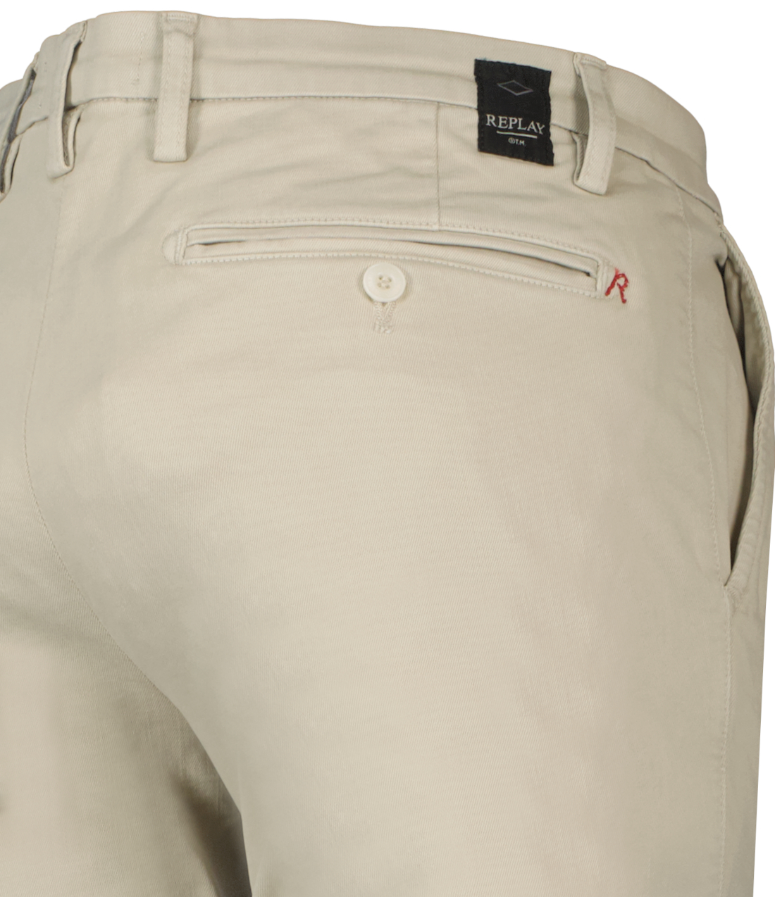 Beige chinojeans voor heren model Zeumar van Replay. De Zeumar is gemaakt van Reform Hyperflex stretch katoenmix denim, is oudgekleurd geverfd en stonewashed en heeft normale taille en smalle pijpen. Met twee zakken aan de voorkant en twee zakken met knopen aan de achterkant, wordt het item geaccentueerd door het custom label aan de achterkant van de tailleband. De broek is voorzien van een ritssluiting en knoopsluiting.