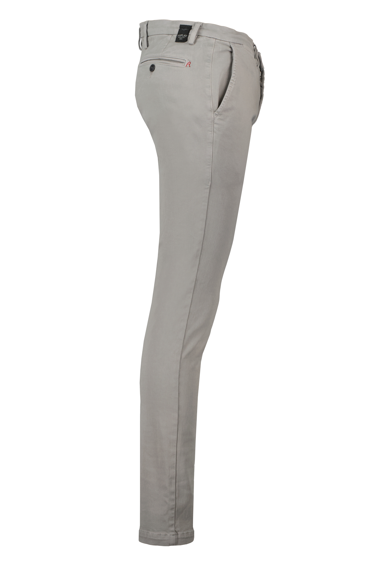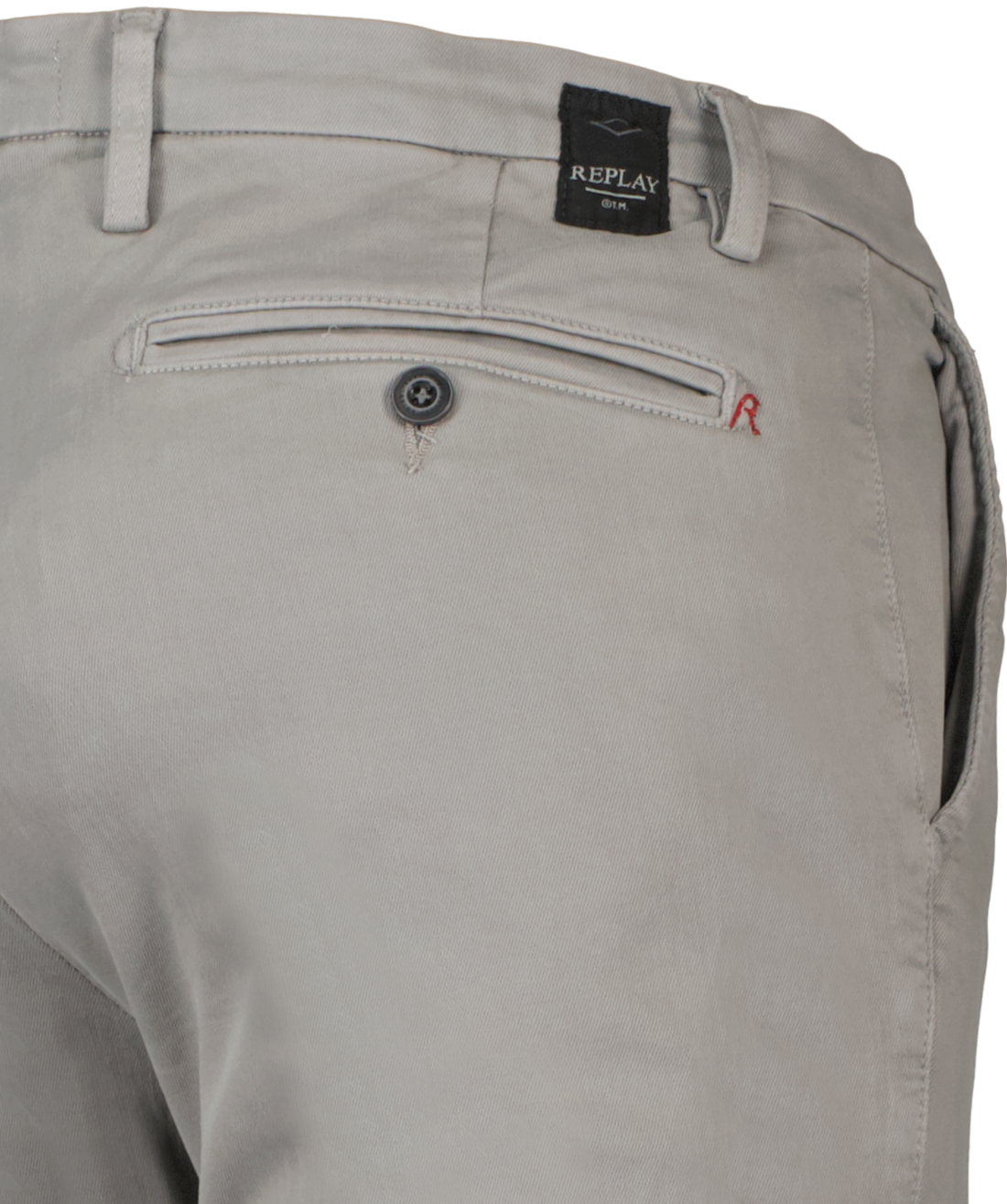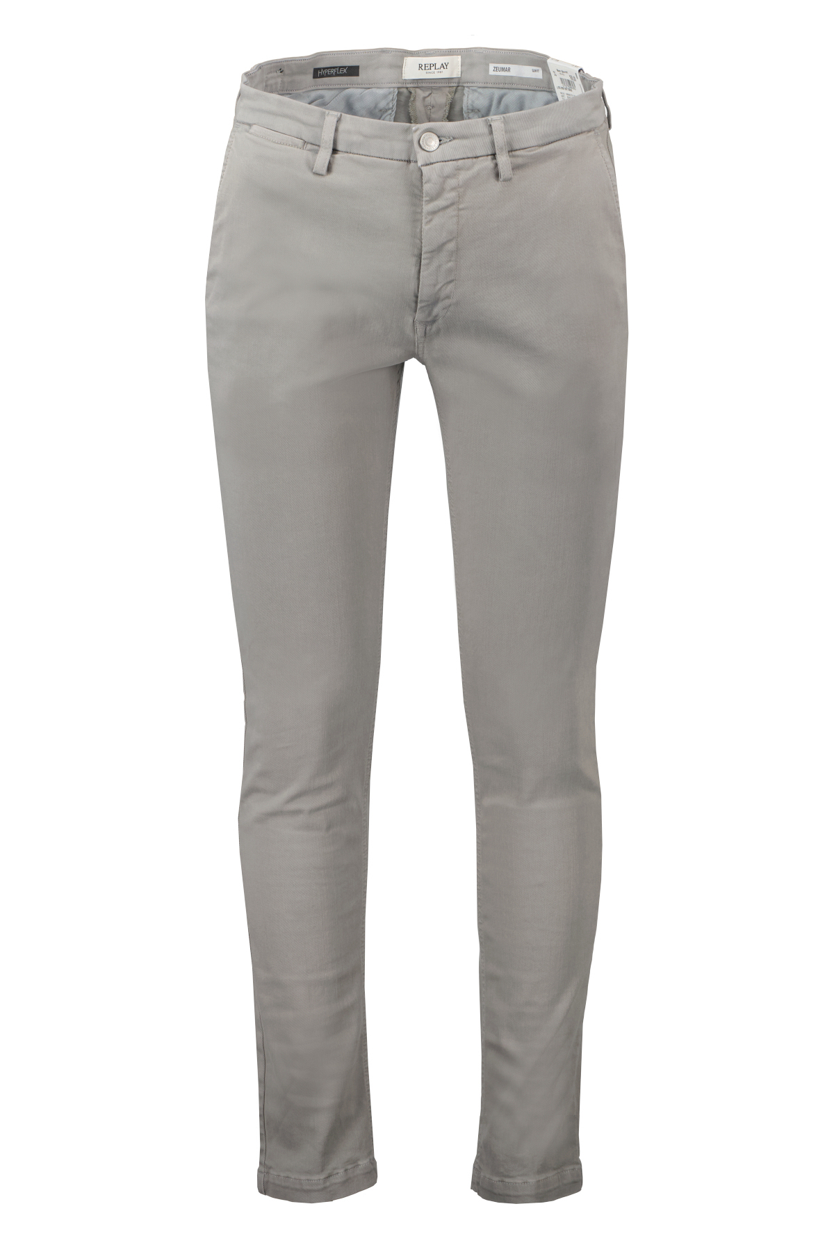 Grijze chinojeans voor heren model Zeumar van Replay. De Zeumar is gemaakt van Reform Hyperflex stretch katoenmix denim, is oudgekleurd geverfd en stonewashed en heeft normale taille en smalle pijpen. Met twee zakken aan de voorkant en twee zakken met knopen aan de achterkant, wordt het item geaccentueerd door het custom label aan de achterkant van de tailleband. De broek is voorzien van een ritssluiting en knoopsluiting.