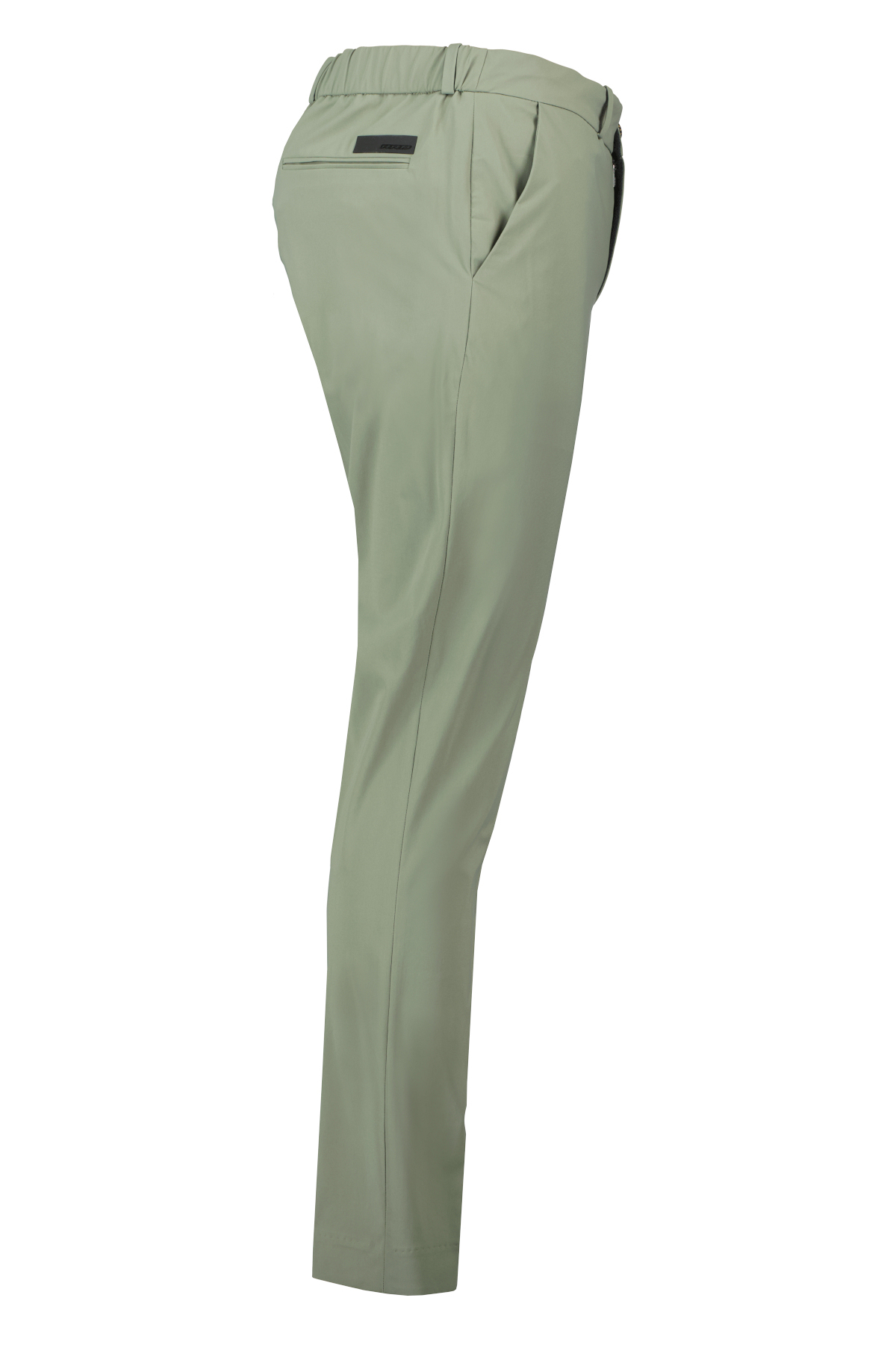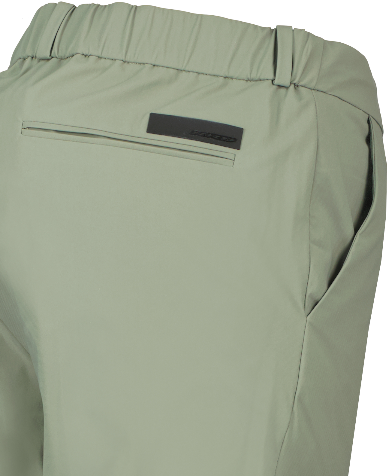 Groene broek voor heren van RRD. Deze broek heeft een tailleband met riemlussen en een elastisch trekkoord met rubberen eindstukken. De binnenkant is geaccentueerd door de band met het ton-sur-ton Razzle Dazzle-monogram, de voorkant wordt gesloten met een hoornen knoop en rits, aan de zijkant zitten zakken in Franse stijl. Deze worden gecompleteerd door paspelzakken achterop, met het zwarte micro-geïnjecteerde logo aan de rechterkant. Deze chino met normale taille, gemaakt van Surflex®-stretchstof, heeft een supermatte look en voelt glad aan. Heeft kreukvrije en strijkvrije eigenschappen.