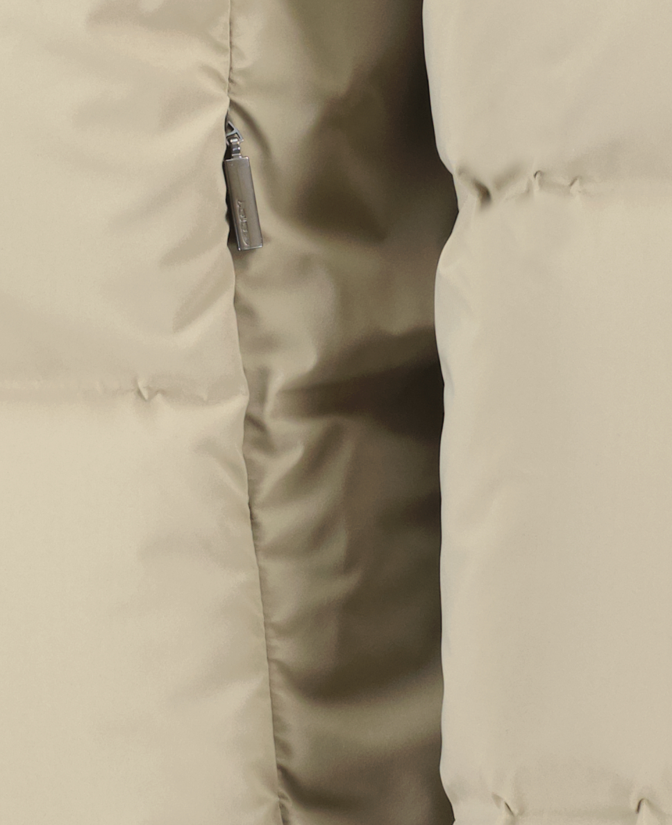 Beige jas voor heren model Surflex Winter Tubic Jacket van RRD. Dit model is gemaakt van SURFLEX®. Het is een technische stof met een supermatte uitstraling die doet denken aan traditionelere texturen: compact, zacht en veelzijdig, ideaal voor het creëren van elegante, onderhoudsvriendelijke, superrekbare en strijkvrije kledingstukken. De jas heeft een afneembare capuchon, verborgen ritssluiting en geeft warmte door de 90/10 eendendonsvulling.