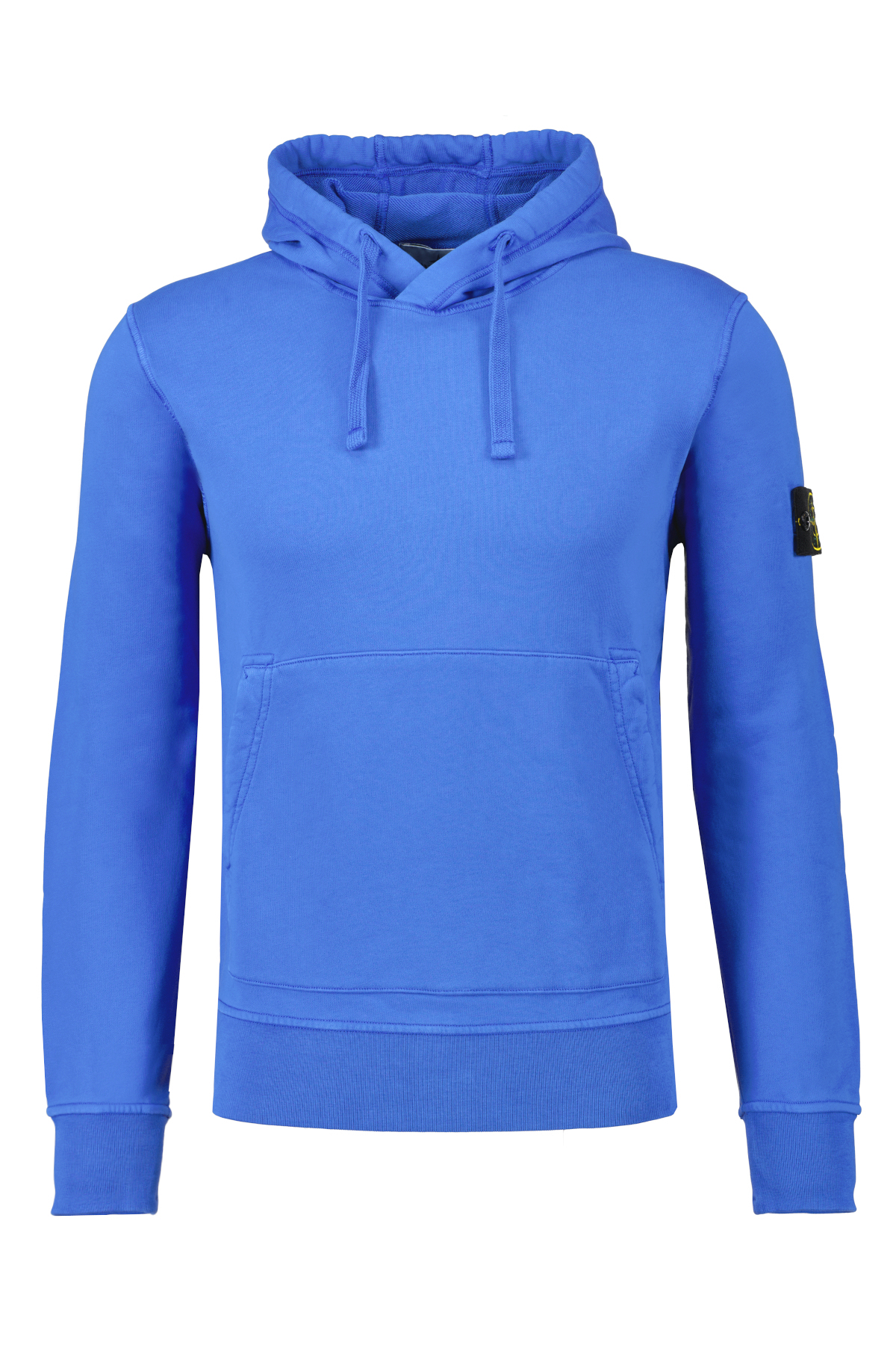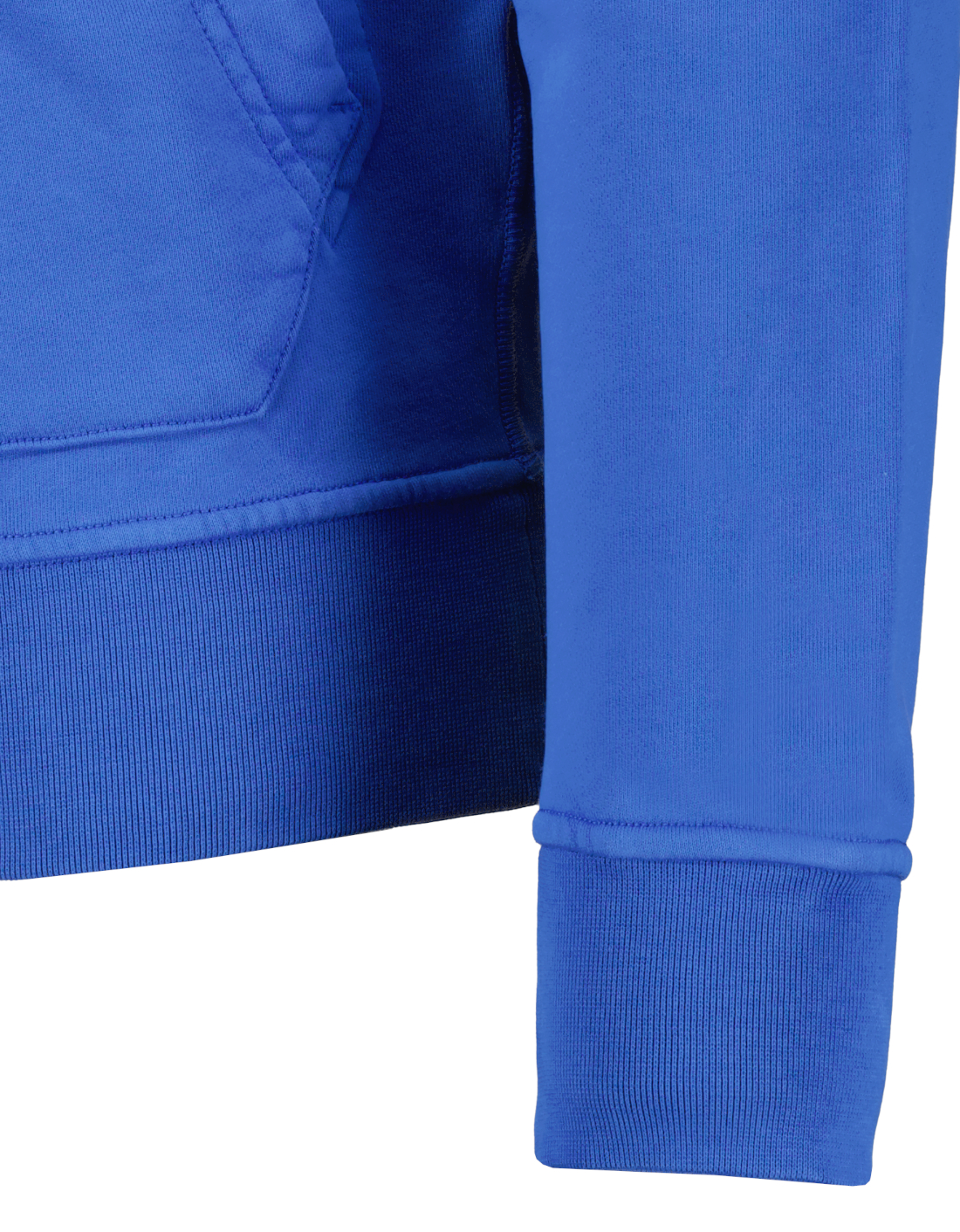 Blauwe hoodie voor heren van Stone Island. De hoodie heeft een capuchon met trekkoord, schuine, opgestikte zakken, het Stone Island-badge op de linkermouw, overlocknaden, lunette met voering onder de halslijn, geribbelde manchetten en onderband en heeft een normale pasvorm.