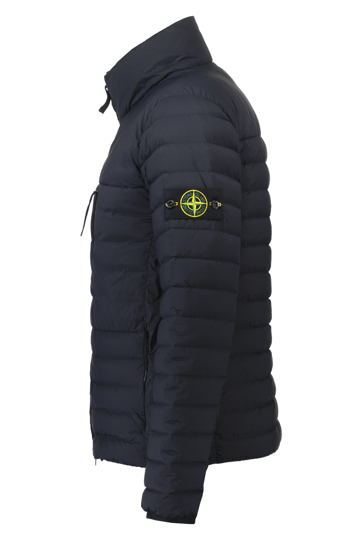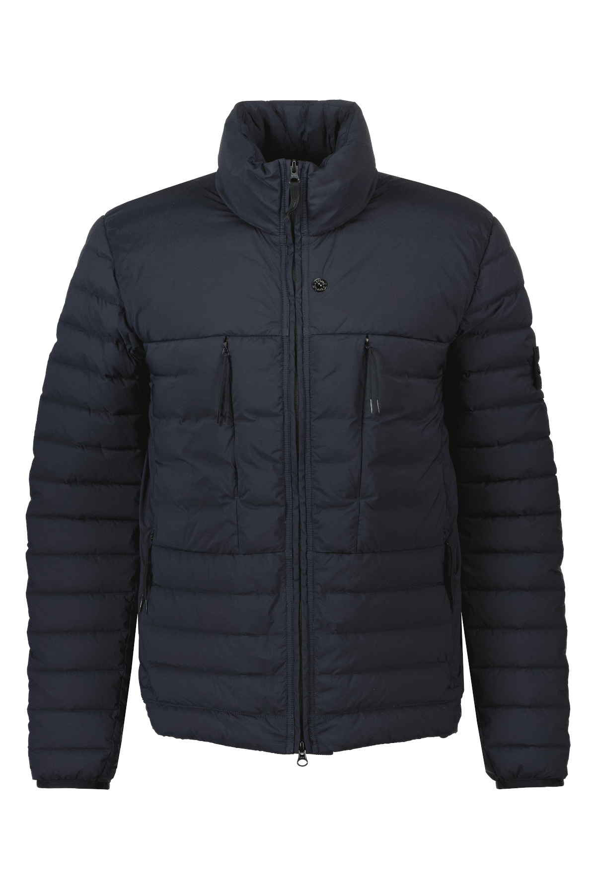 Donkerblauwe jas voor heren van Stone Island. Het item is garment dyed met een speciale anti-drop finish en is RDS-gecertificeerd (Responsible Down Standard). Voorzien van verticale borst- en steekzakken met verdekte rits, elastische boorden aan de mouwen, een verstelbaar trekkoord in de zoom en een verdekte tweewegrits met drukknoop ter hoogte van de borst. Afgewerkt met de herkenbare Stone Island badge op de linkermouw.