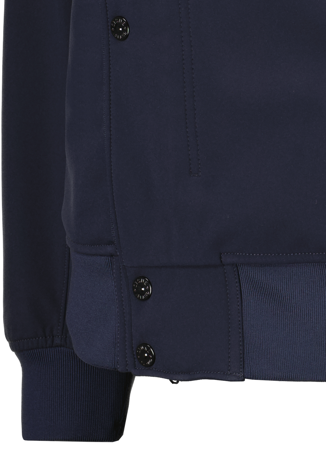 Donkerblauwe jas voor heren van Stone Island. De jas biedt veel flexibiliteit en draagcomfort en is voorzien van een capuchon met intern trekkoord, schuine zakken met verdekte rits en een tweewegrits onder een drukknopenlijst. Afgewerkt met ribgebreide boorden, een rugpanddetail en de iconische Stone Island badge op de linkermouw.