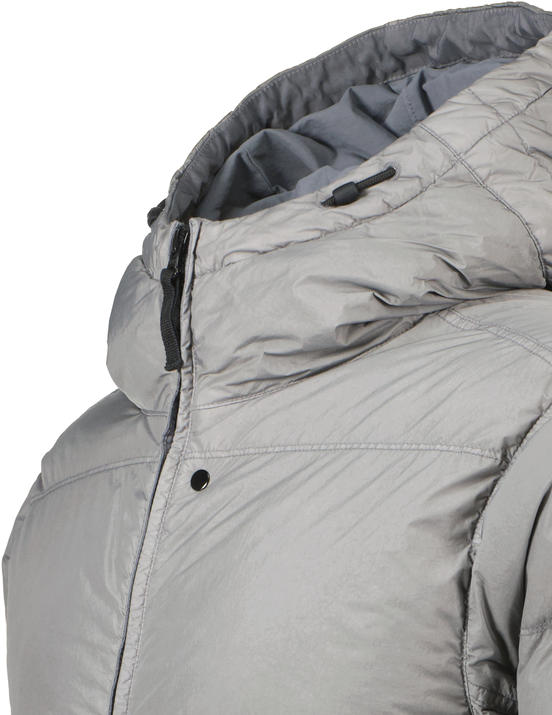 Donkergrijze jas voor heren van Stone Island. Deze jas heeft een gevoerde capuchon met trekkoord, heeft rwee handzakken: één met een opening aan de bovenkant, een driehoekige klep en een drukknoop; de tweede staande zak met een verborgen drukknoop. Binnenzak met knoop en geborduurd Compass-logo, heeft een Stone Island-badge op de linkermouw, elastische binnenmanchetten, trekkoord in de zoom en een verborgen tweewegritssluiting met één drukknoop aan de binnenkant.
