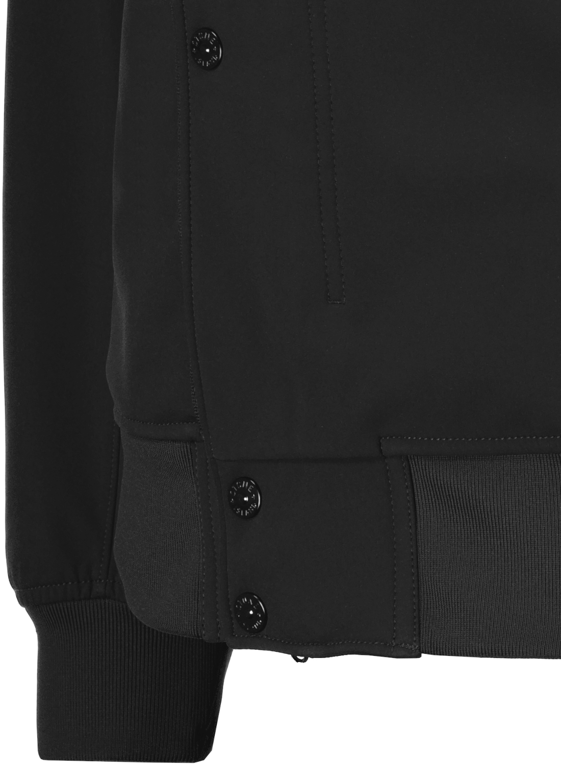 Hooded jack is uitgevoerd in een drielaags performance materiaal. De buitenstof van polyester stretch canvas is geweven met garens die zijn gekleurd via het e.dye® Waterless Color System™, een innovatieve en duurzame verftechniek. De stof is gelamineerd met een ademend, water- en winddicht membraan, afgewerkt met een beschermende polyester jersey aan de binnenzijde.