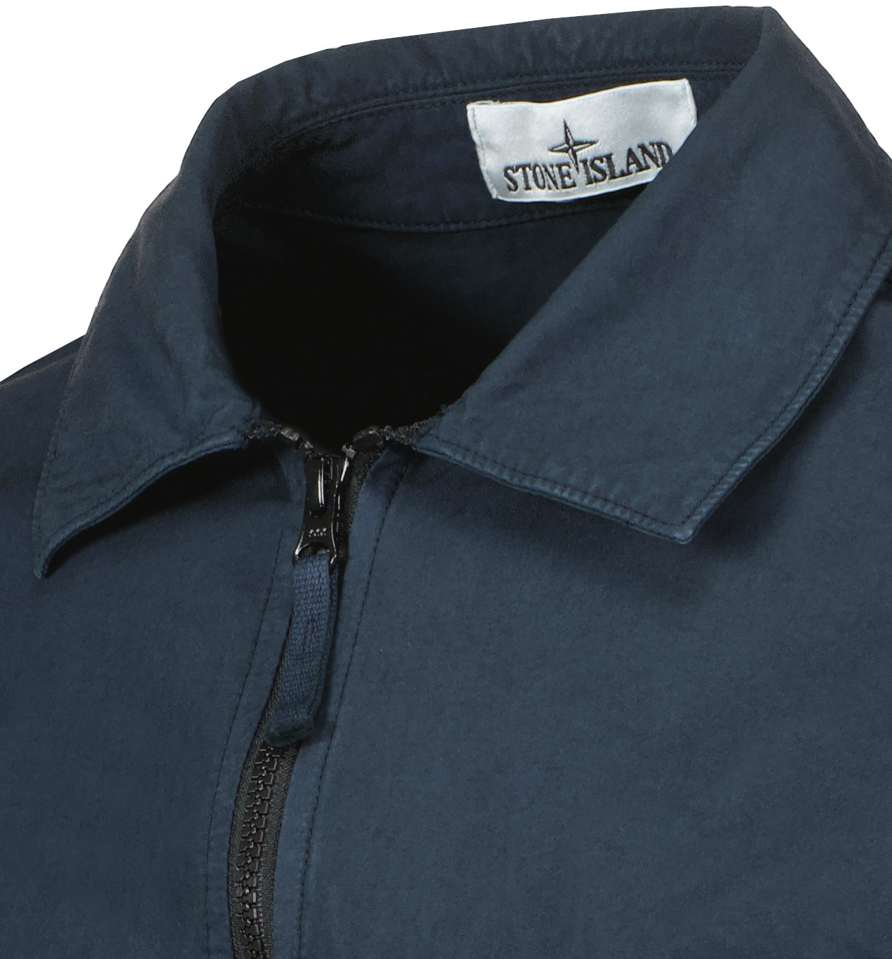 Donkerblauw overshirt voor heren van Stone Island. Dit overshirt heeft aan de linkerkant van de borst een plooizak met drie knopen onder de klep, die overlapt met een tweede zak met staande opening en rits, heeft het Stone Island-embleem op de linkermouw, drukknoopsluiting aan de manchetten, een tweewegritssluiting en heeft een comfortabele pasvorm.