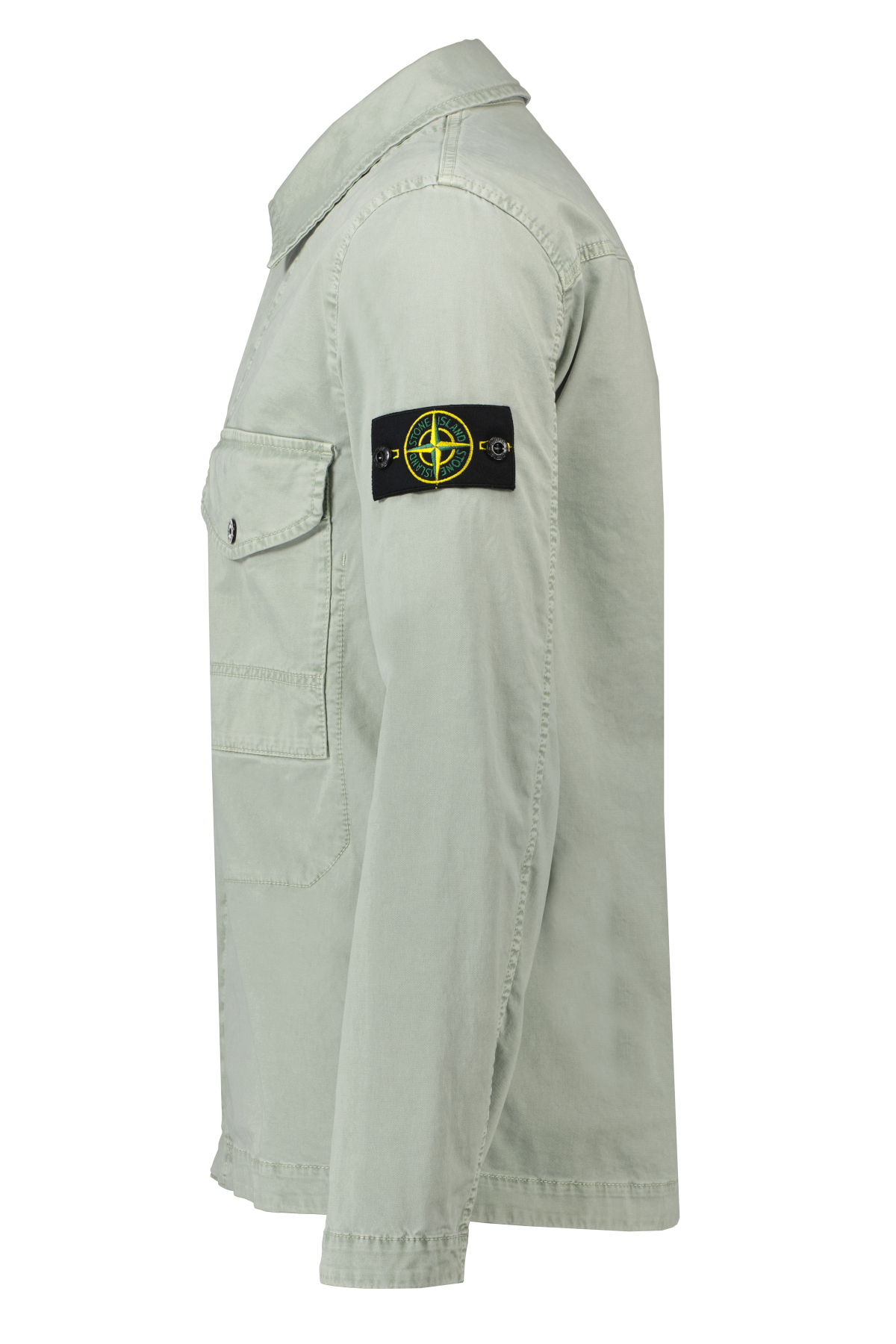 Lichtgroen overshirt voor heren van Stone Island. Voorzien van een borstzak met driehoekige klep en drukknoop, een interne borstzak en een rugpanddetail. Afgewerkt met verstelbare manchetten, een verdekte tweewegrits met drukknopen en de herkenbare Stone Island badge op de linkermouw.