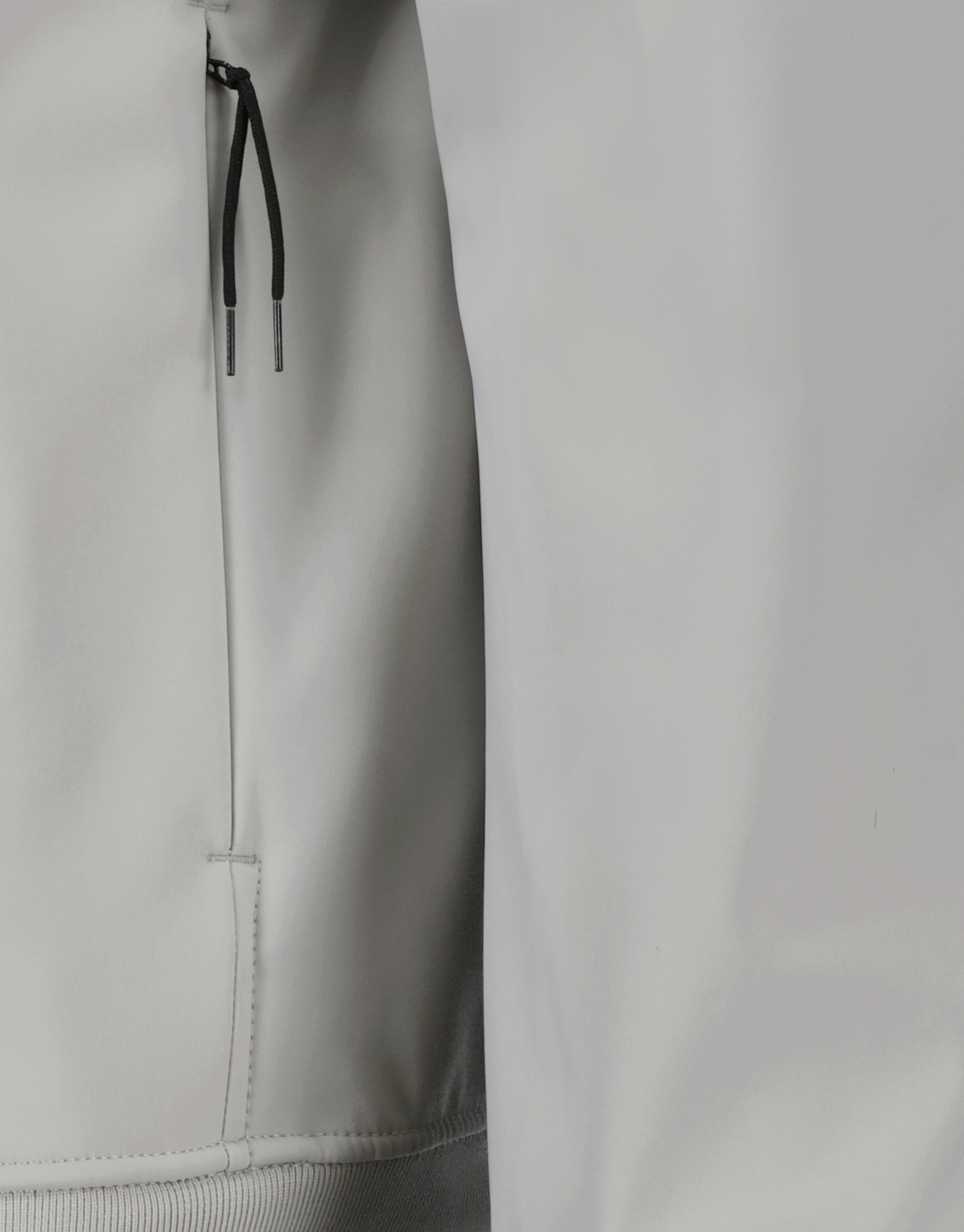 Grijze softshell jas voor heren van Stone Island. Deze lichte capuchonjas is gemaakt van een 3-laags performance materiaal met een waterkolom van 8000 mm. De buitenkant van polyester stretchcanvas is geweven met garens met behulp van e.dye® Waterless Color System™-technologie, een innovatief systeem voor kleurverzadiging van garens. De stof is gelamineerd op een ademend, wind- en waterbestendig binnenmembraan, beschermd door een fleece-rug. De structuur van het materiaal zorgt voor een uitzonderlijke mate van flexibiliteit en comfort.