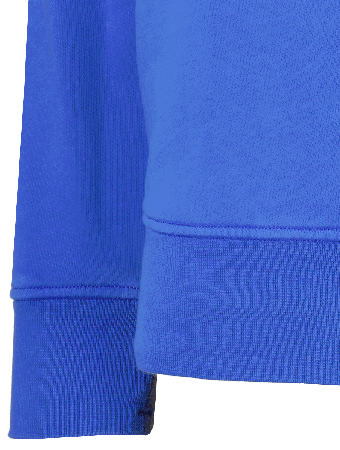 Felblauwe trui van Stone Island met ronde hals en logopatch op de linkerarm. De trui is gemaakt van katoenfleece, is geverfd, heeft een geribbelde halslijn, een Stone Island-badge op de linkermouw, overlocknaden, Lunette onder de halslijn met binnenvoering op de rug en geribde manchetten en onderband.