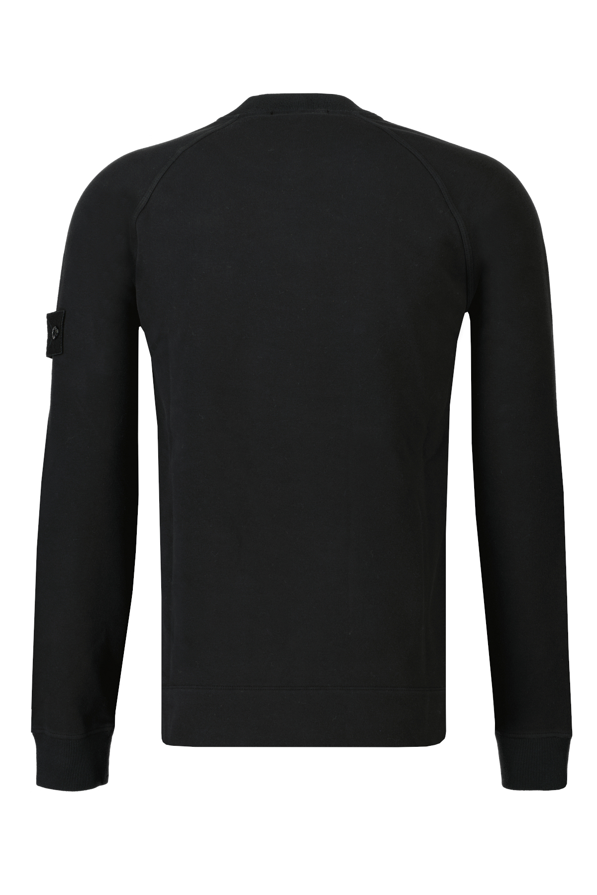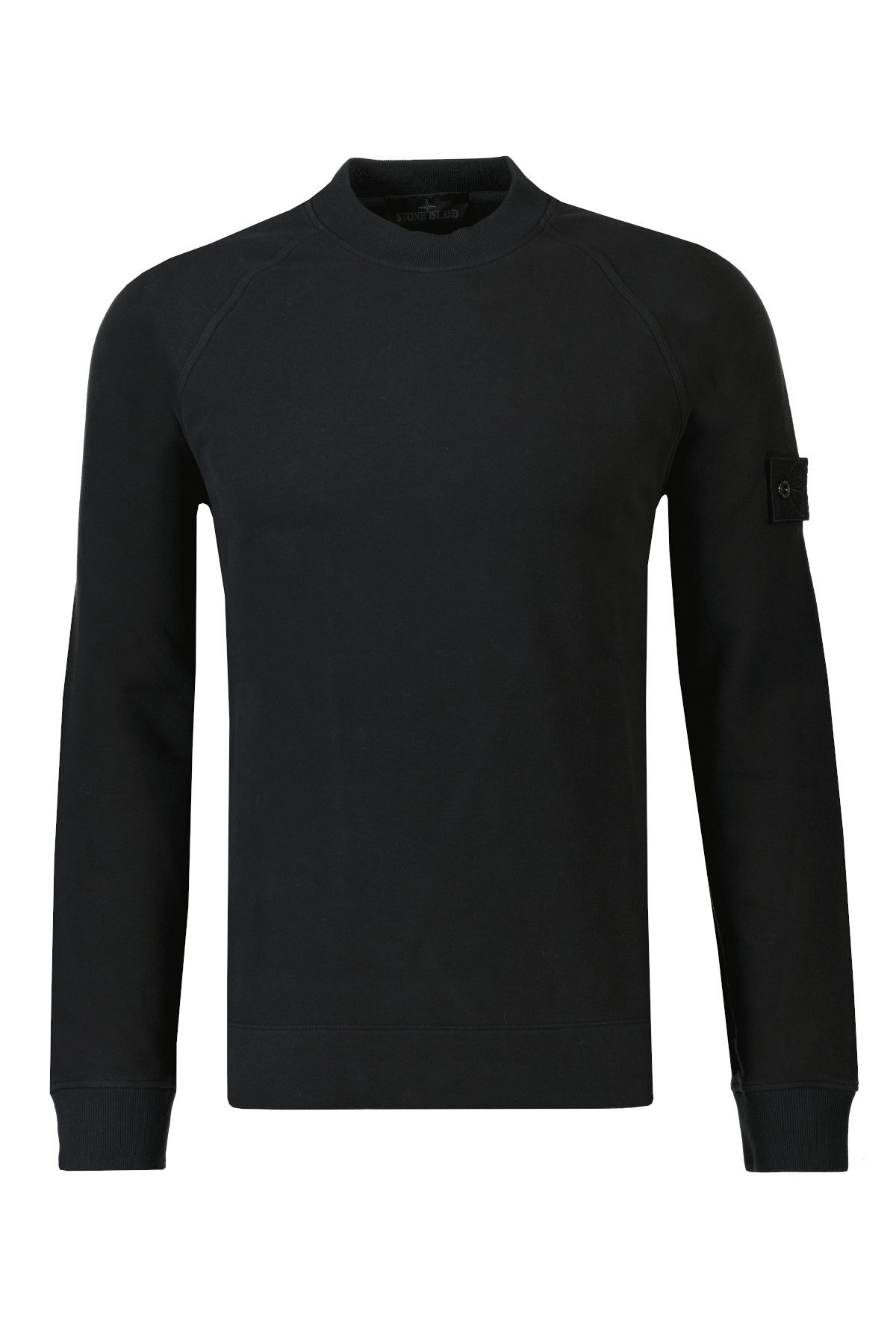 Zwarte sweater voor heren uit de Ghost collectie van Stone Island. De sweater heeft een ronde, hoge geribbelde halslijn, raglan mouwen met geribbelde manchetten en platte onderband, De Stone Island Ghost badge is bevestigd op de linkermouw en heeft een normale pasvorm.