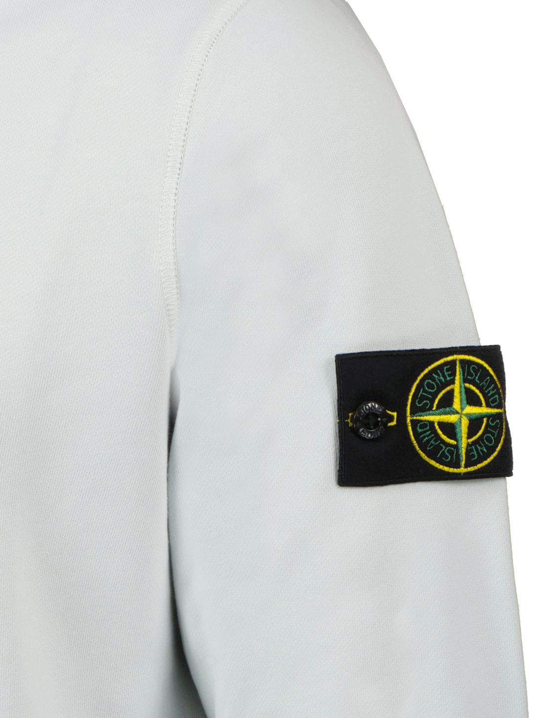 Lichtgrijze trui van Stone Island met ronde hals en logopatch op de linkerarm. De trui is gemaakt van katoenfleece, is geverfd, heeft een geribbelde halslijn, een Stone Island-badge op de linkermouw, overlocknaden, Lunette onder de halslijn met binnenvoering op de rug en geribde manchetten en onderband.