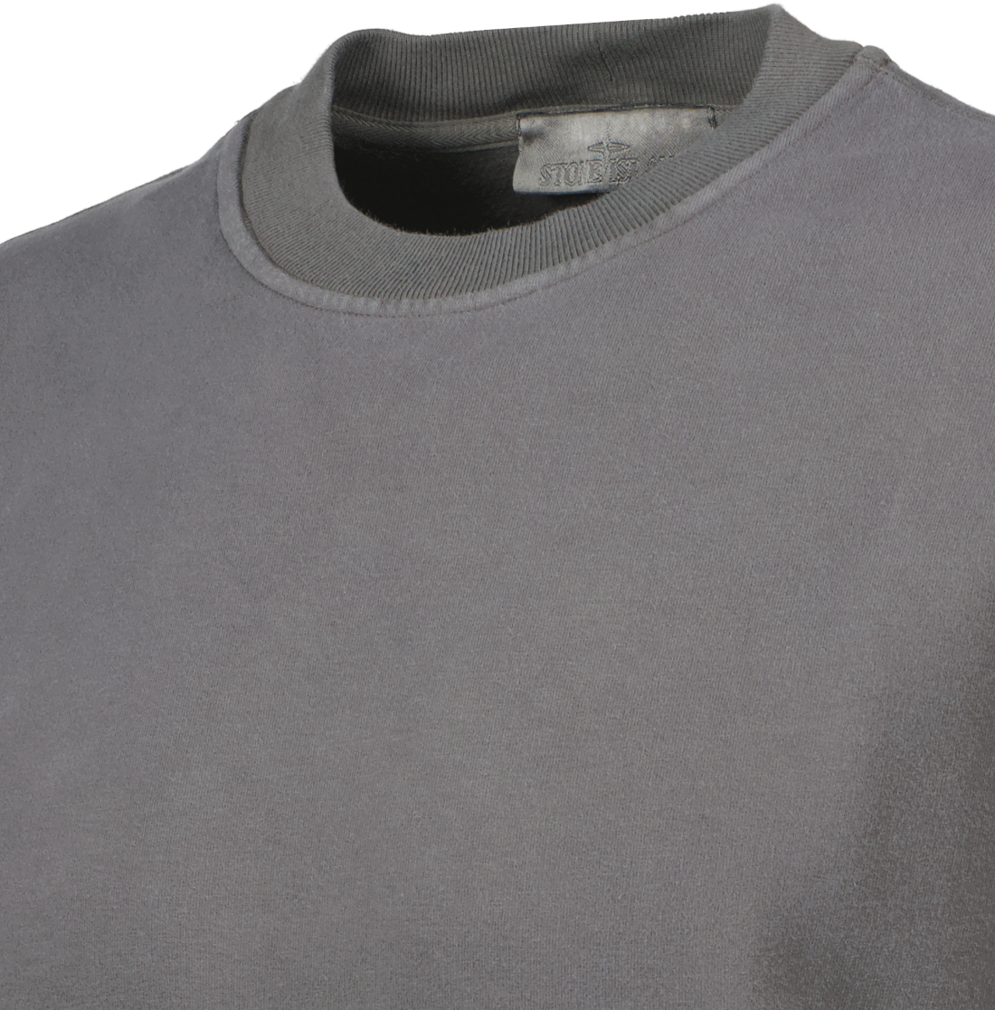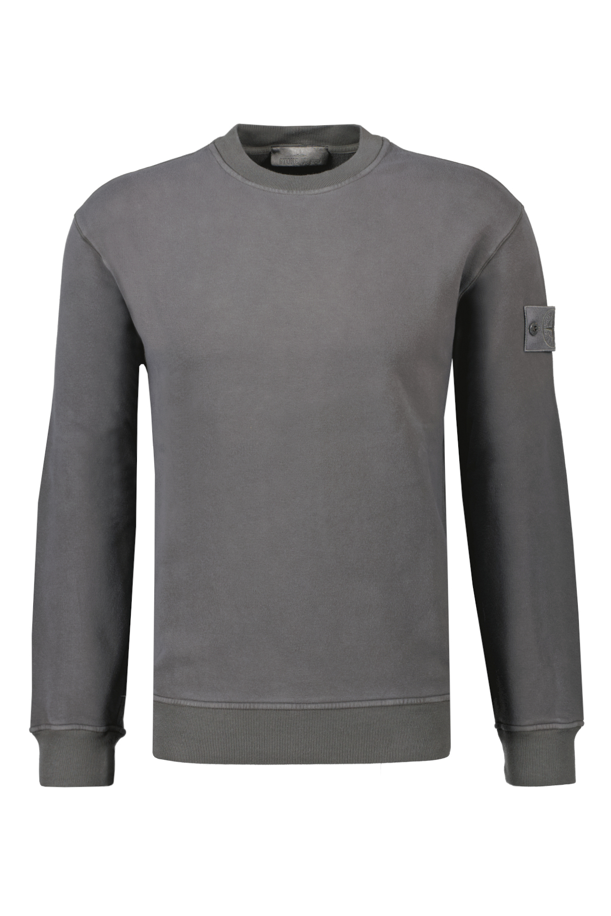 Donkergrijze sweater voor heren uit de Ghost Collectie van Stone Island. Deze sweater is gemaakt van licht stretch katoen met fleece, heeft een geribbelde halslijn, een Stone Island Ghost-badge op de linkermouw, geribbelde manchetten en onderband. Heeft een comfortabele pasvorm.