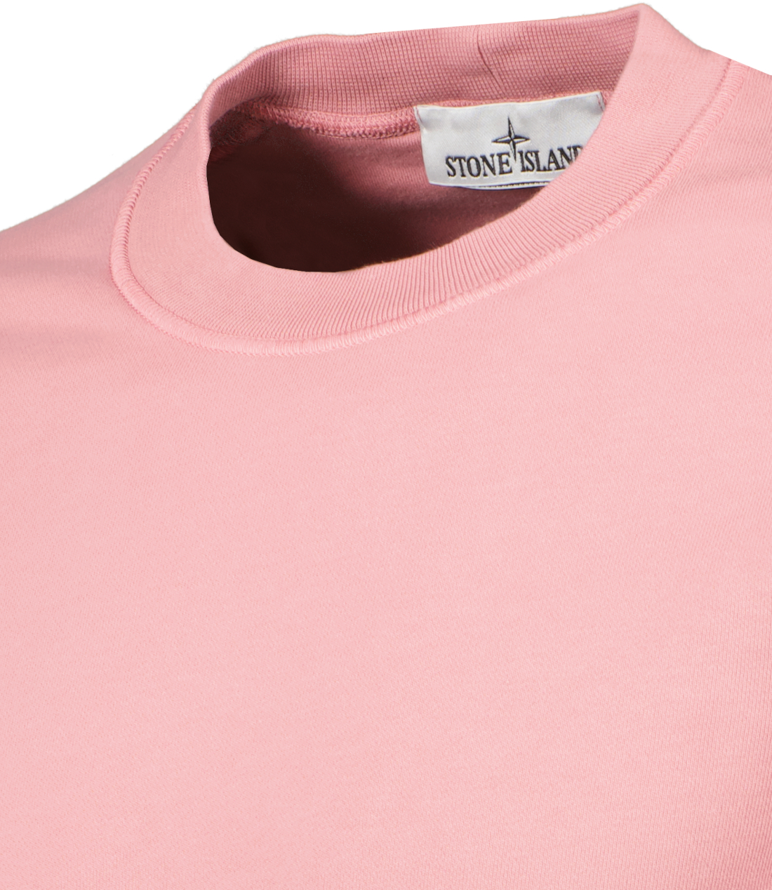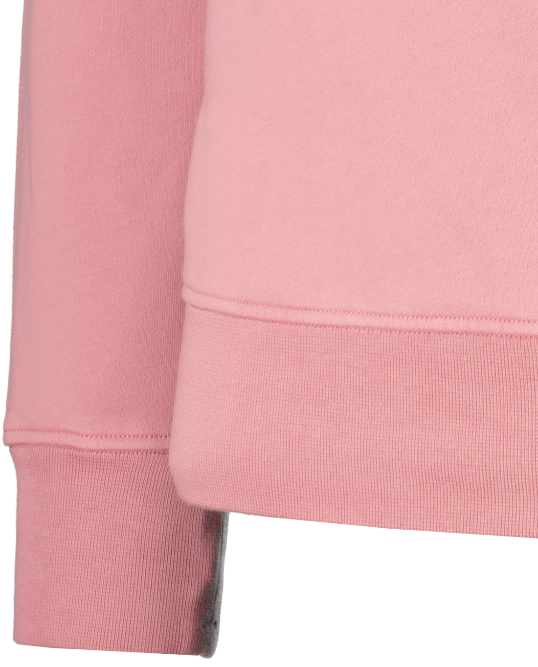 Roze trui van Stone Island met ronde hals en logopatch op de linkerarm. De trui is gemaakt van katoenfleece, is geverfd, heeft een geribbelde halslijn, een Stone Island-badge op de linkermouw, overlocknaden, Lunette onder de halslijn met binnenvoering op de rug en geribde manchetten en onderband.