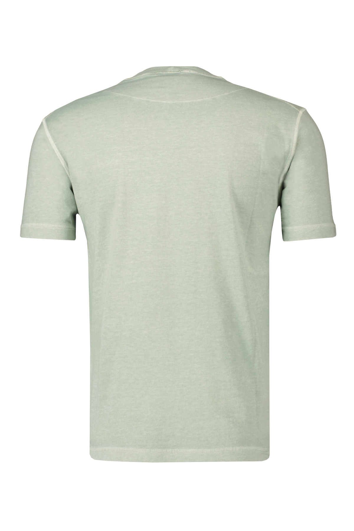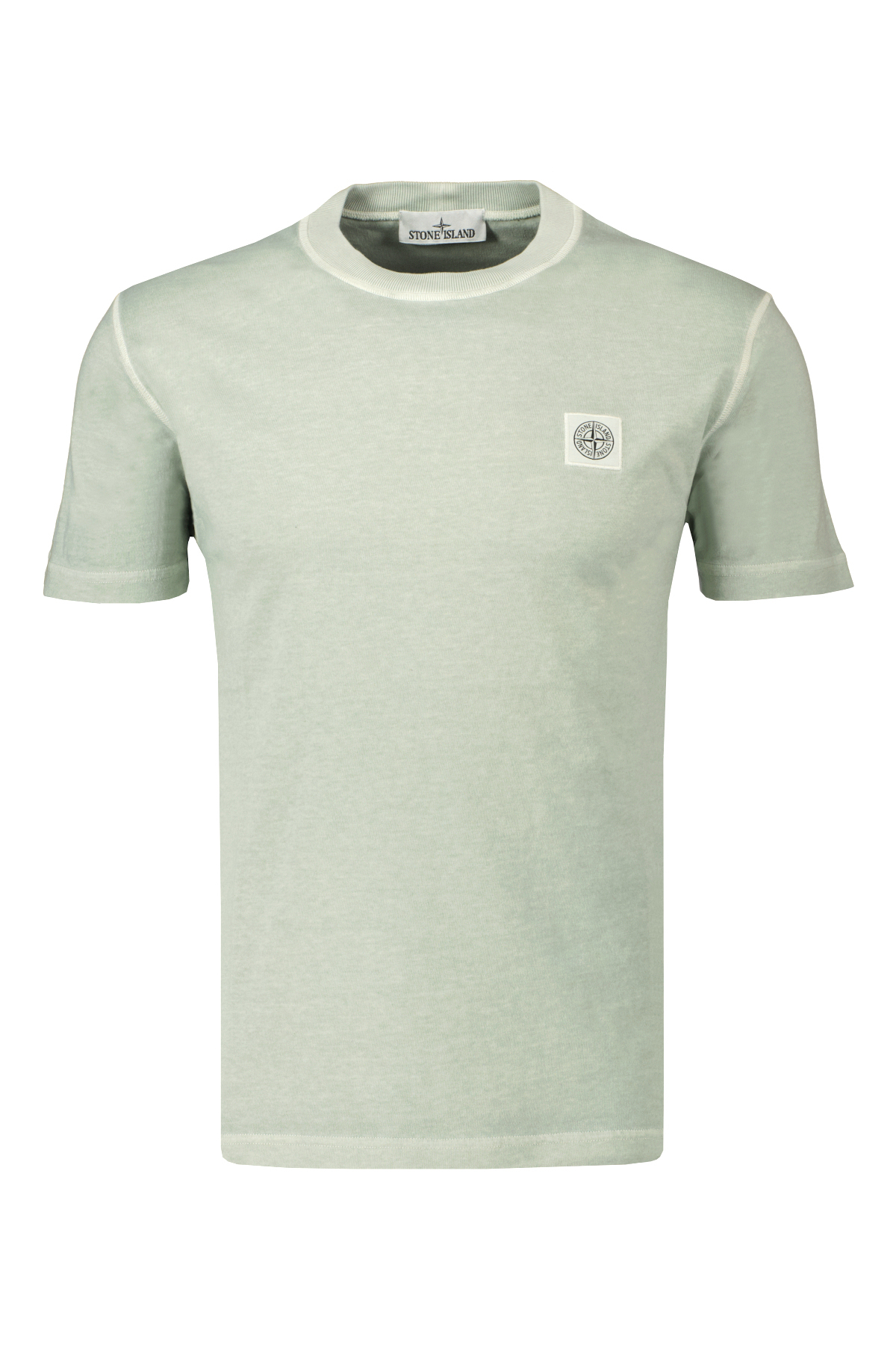 Lichtgroen, gemêleerd T-shirt met korte mouwen voor heren van Stone Island. Dit T-shirt met korte mouwen is gemaakt van biologisch katoenen jersey, garment dyed en behandeld met het 'FISSATO'-effect, een behandeling met wateroplosbare hars en een verftechniek voor kleding die een driedimensionaal effect creëert.