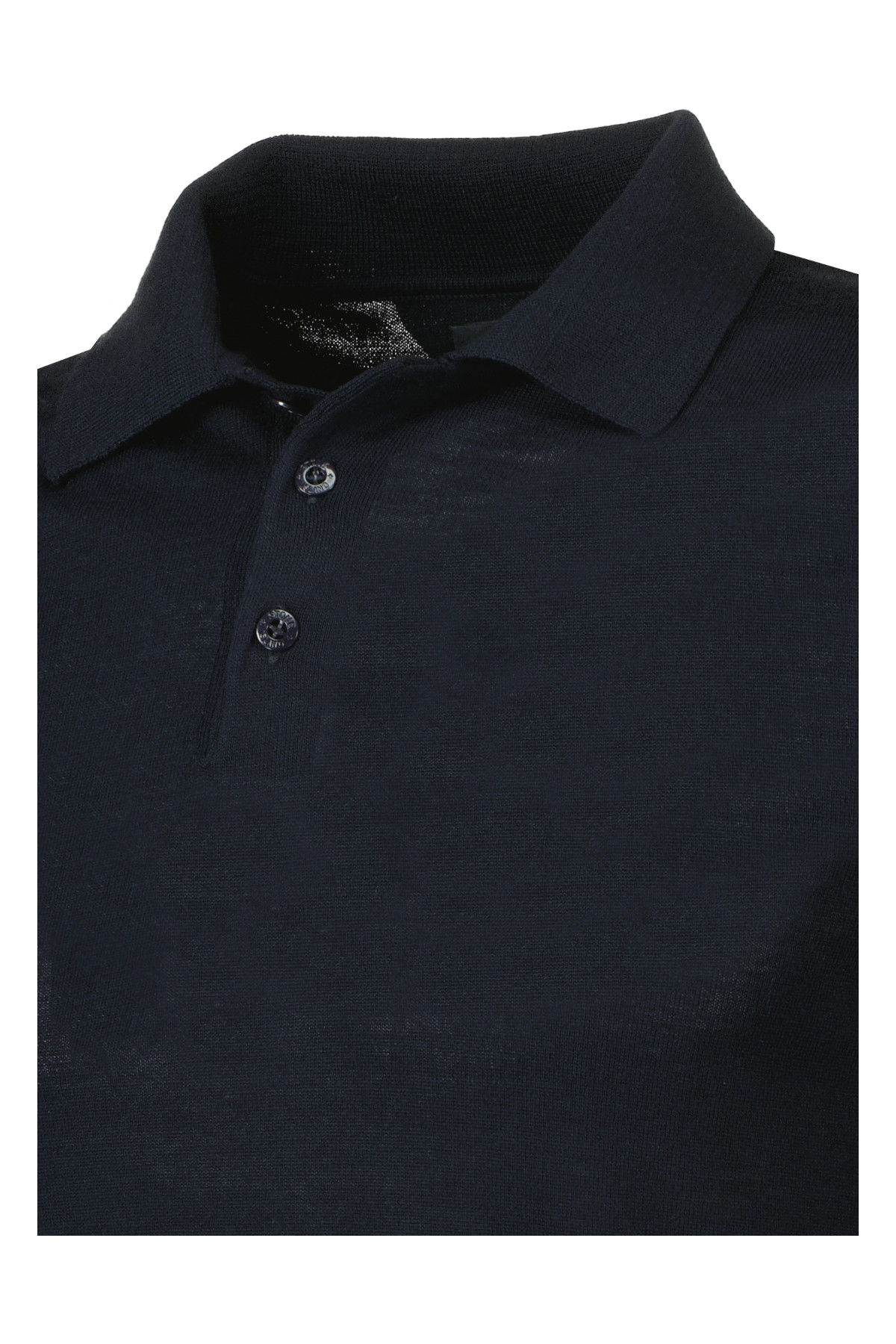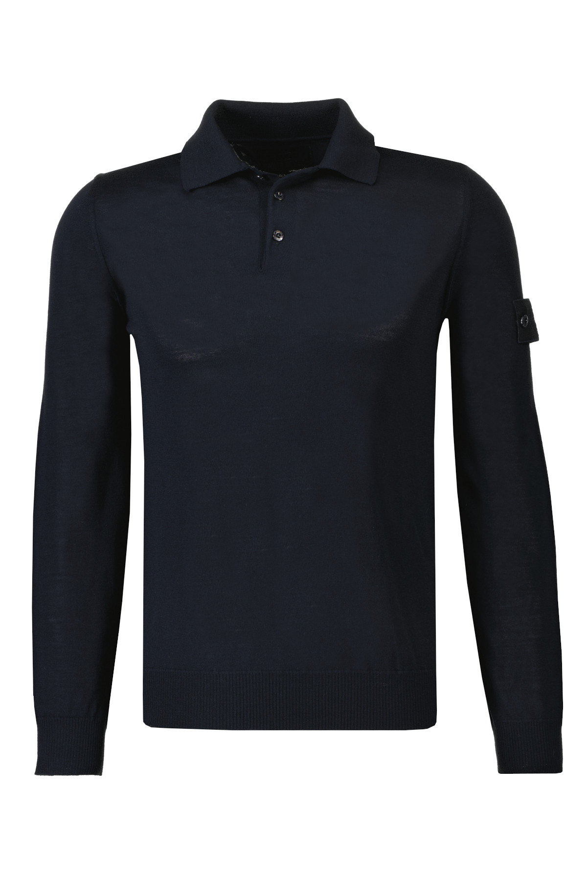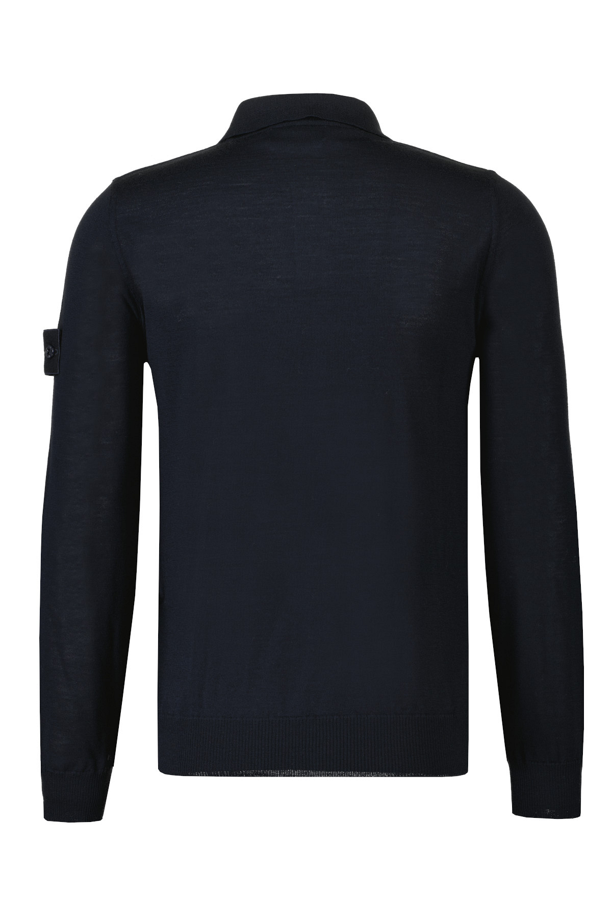 Blauwe trui met kraag voor heren van Stone Island Ghost collectie. De trui heeft een geribbelde kraag, manchetten en onderband. De Ghost badge is bevestigd op de linkermouw. De trui heeft een normale pasvorm.
