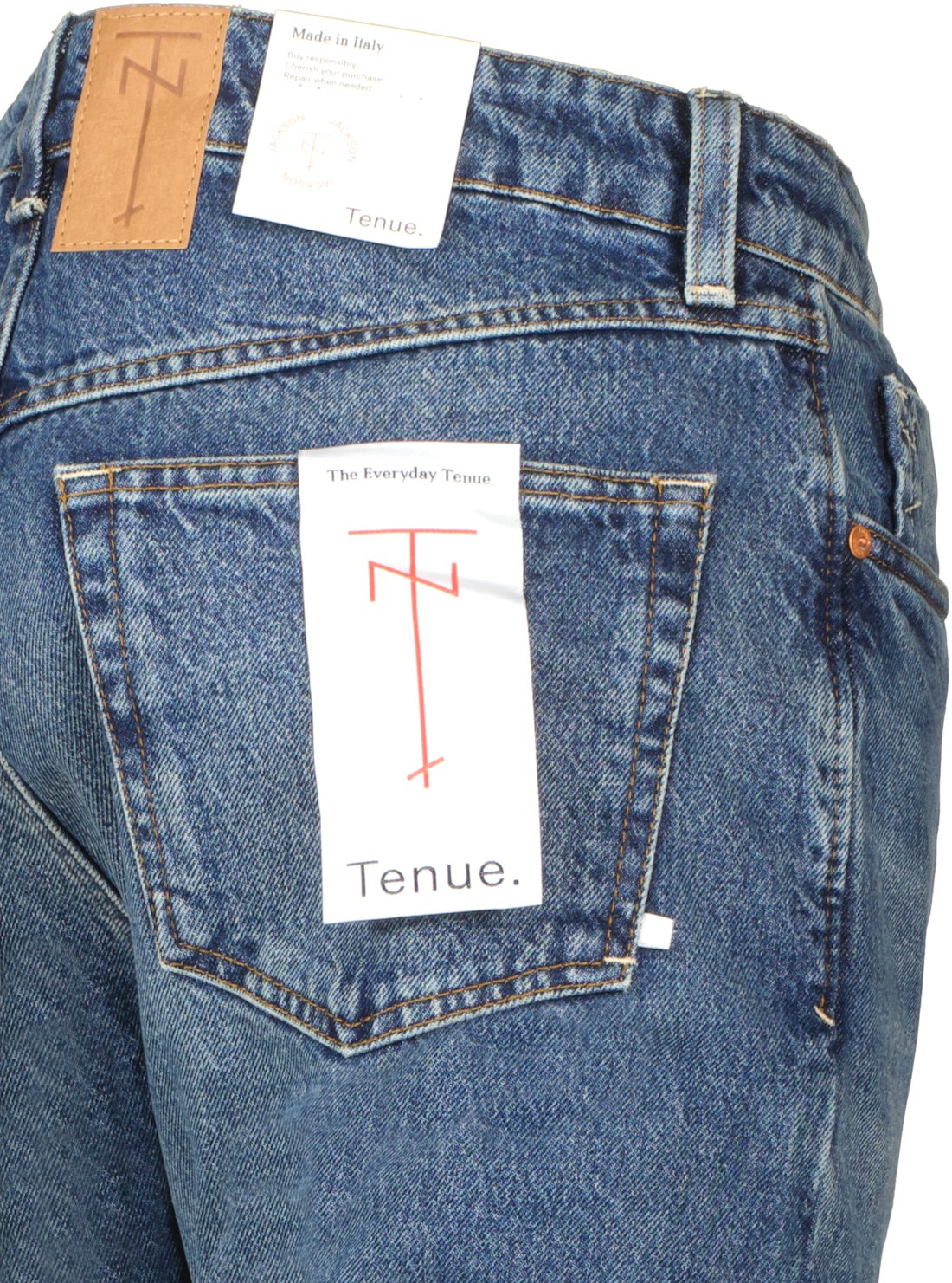 Blauwe jeans voor heren model Jackson van Tenue. De Tenue. Jackson jeans hebben een relaxte bovenbouw en een hoge taille, gecombineerd met een mooi getailleerde pijp. Dit betekent dat de pijp van de Jackson naar de voet toe smaller wordt. De jeans zijn gemaakt van 100% biologisch katoenen denimstof. De vintage 'Klamath'-wassing is verwassen tot een donkerdere indigo, met natuurlijke scraping en gemaakt van 100% organisch katoen. Jackson wordt gemaakt in Italië.