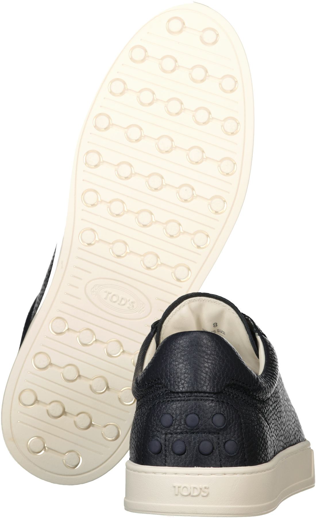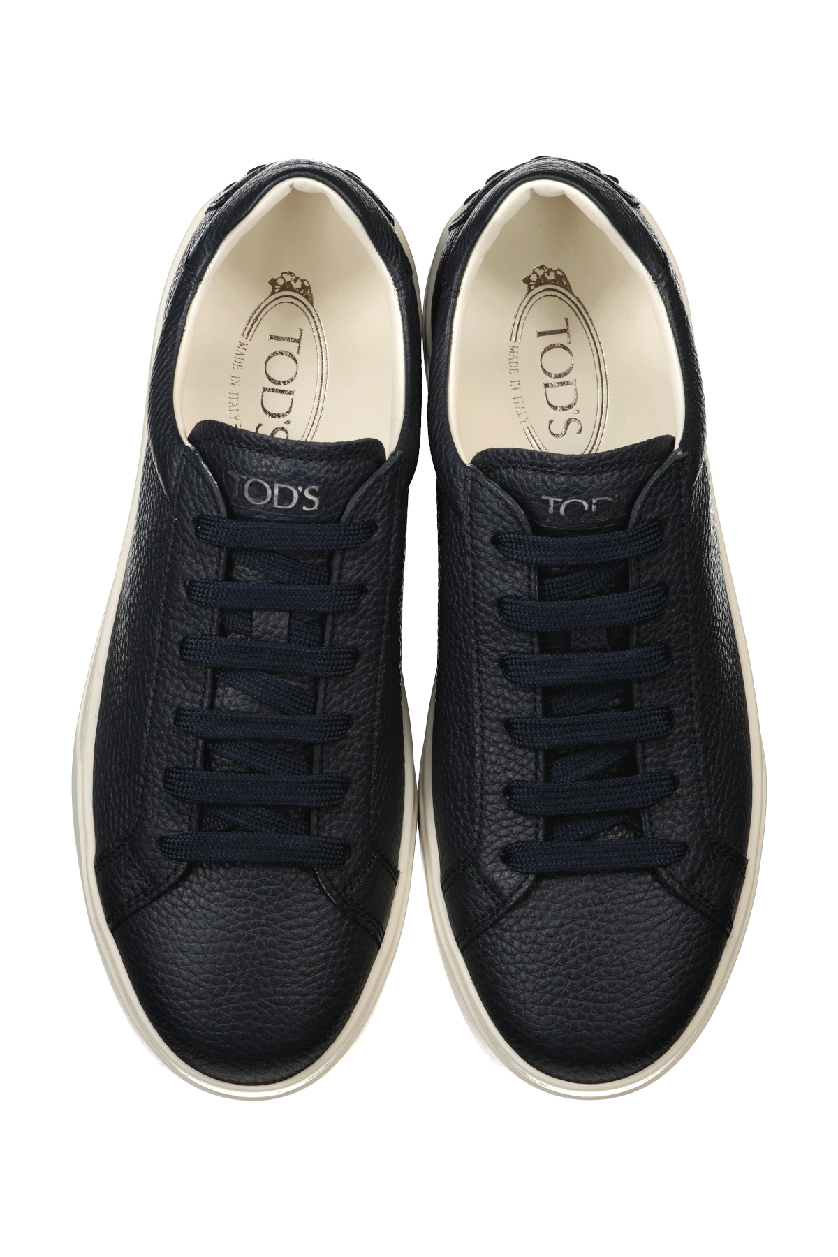 Donkerblauwe sneakers voor heren van Tod's. Deze minimalistische schoenen kenmerken zich door een strakke en elegante stijl, met het Tod's-logo op de tong. Ze zijn vervaardigd van natuurlijk generfd kalfsleer en hebben een rubberen zool met reliëfprofiel. Gemaakt in Italië. Komt met informatie over verzorging en onderhoud, Tod's logo hoesje en een extra paar schoenveters.
