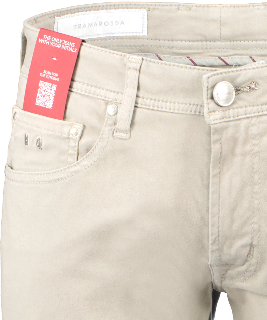 Beige, geribbelde heren jeans van Tramarossa in model Leonardo. De Leonardo valt slim met minimale stretch, en minimaliseert de structuur van de stof de vorming van kreukels. De wassing heeft een 6 months heritage. Verder heeft de jeans een 5 pocket afwerking met ritssluiting. De jeans kunnen worden voorzien van je initialen d.m.v. kleine, metalen letters. Vraag hiernaar in onze winkels.