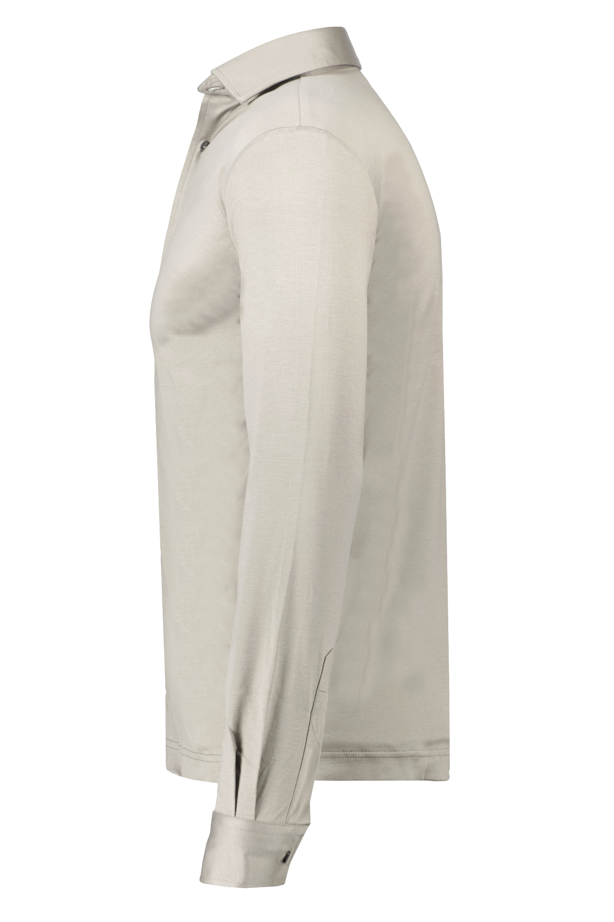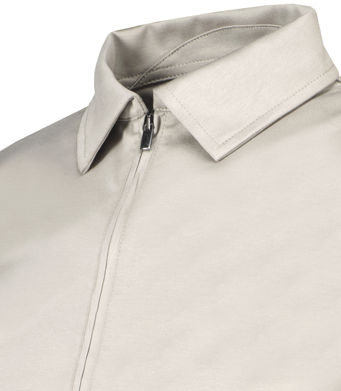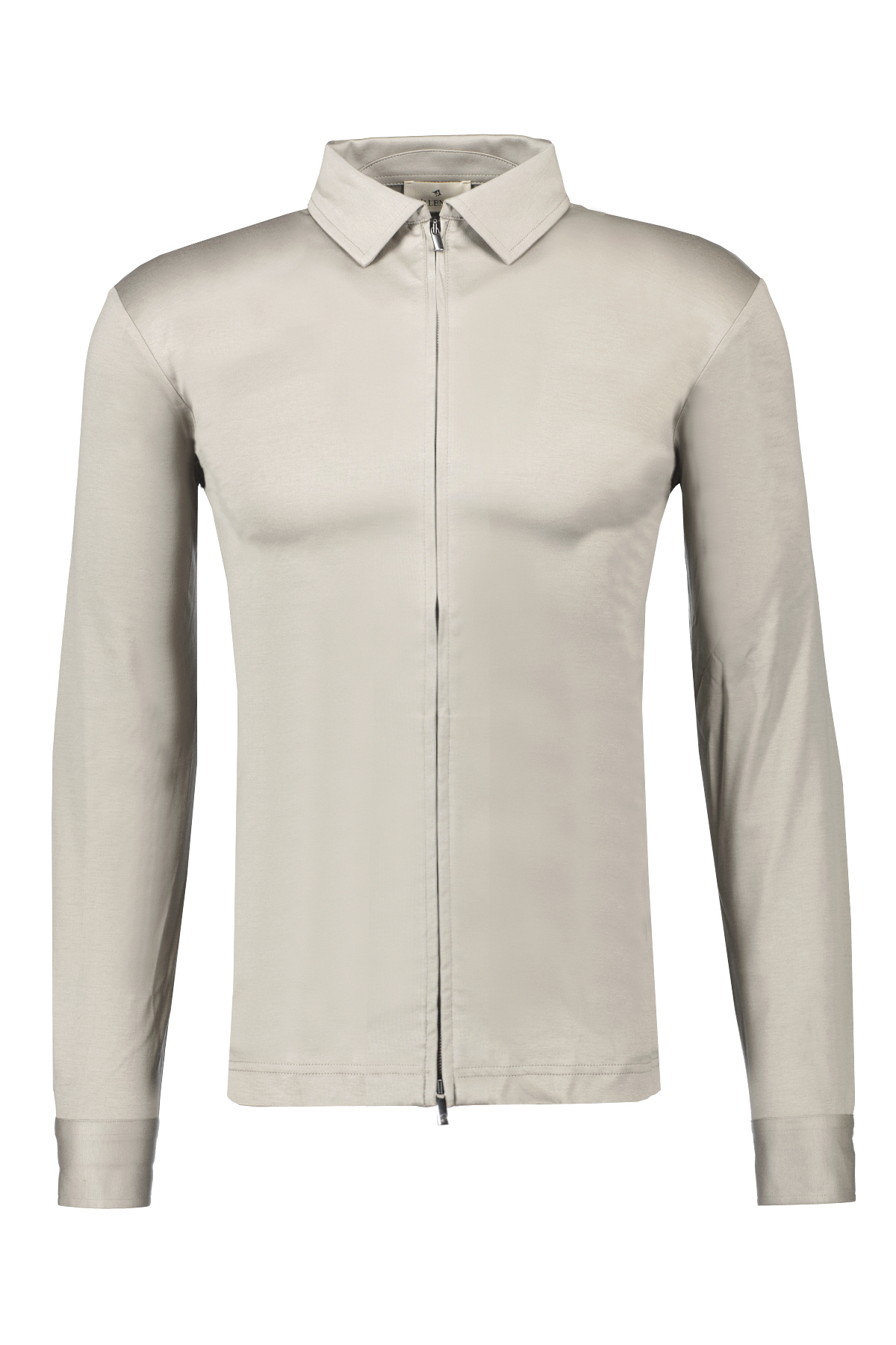 Grijsbeige overshirt voor heren model Supima Overshirt van Valenza. Het Supima Overshirt is gemaakt van 100% interlock supima katoen, heeft een normale pasvorm, lange mouwen met manchetten, onzichtbare zijzakken, een polokraag en een dubbele ritssluiting. 100% made in Italy.