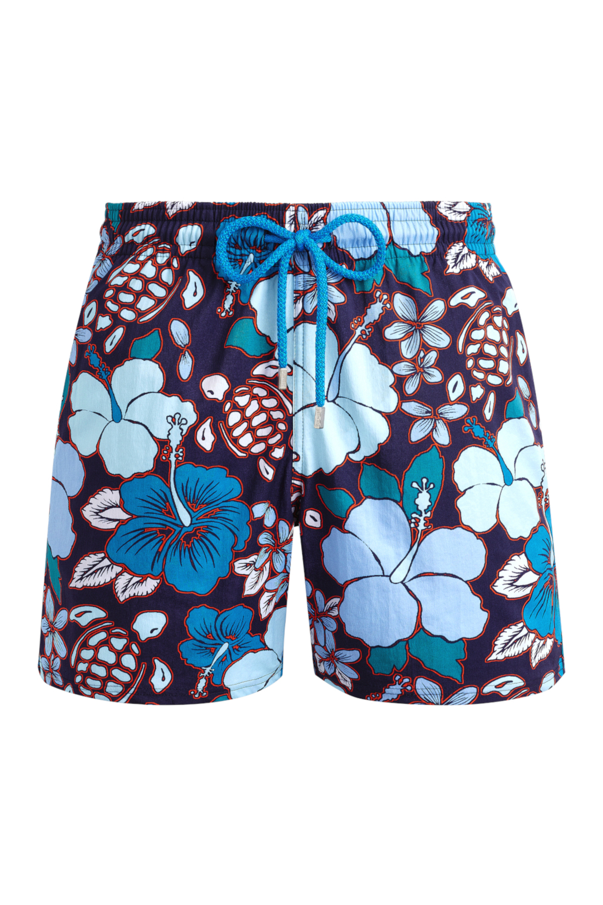 Blauwe zwembroek met print voor heren van Vilebrequin. Zeer aangenaam om te dragen heren zwemshort, met elastische tailleband met vier stiksels en trekkoord voor optimaal comfort. Peach finish voor meer zachtheid, speciale behandeling voor extra sneldrogend effect, een perfecte pasvorm en comfort dankzij de stevige en zachte binnenslip zonder middennaad (100% polyester). Twee veterogen aan de achterkant voor een optimale waterafvoer. Twee zijzakken, trekkoorddetail: Vilebrequin gegraveerde tips in roestvrij legering. Met de hand vast gestikte achterzak die perfect past bij de print van deze zwemshort.