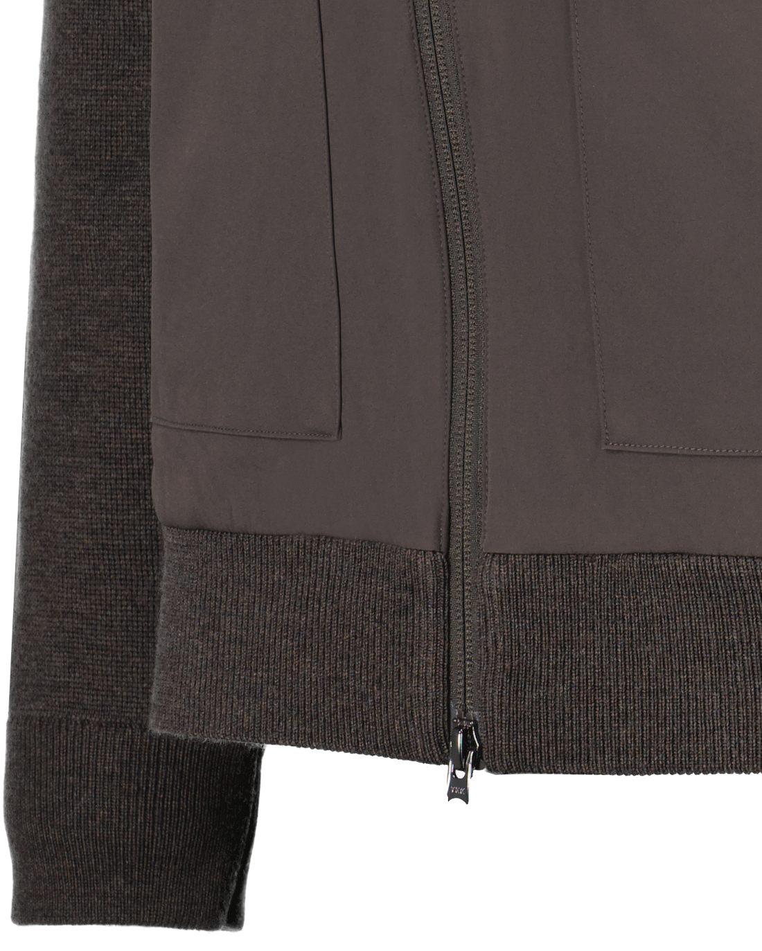 Donkerbruine jas voor heren model Dawson van Wahts. De Dawson is gemaakt van 100% merinowol wat de jas ademend en temperatuurregulerend maakt, heeft een opstaande kraag, een tweewegritssluiting aan de voorkant,