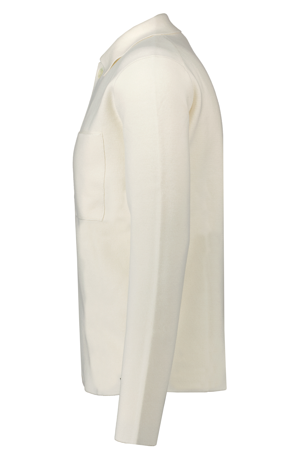 Gebroken wit overshirt voor heren model Maxwell van Wahts. De Maxwell is gemaakt van een luxueuze mix van merinowol en kasjmier in Milano-steek, biedt het een moderne, compacte uitstraling met uitzonderlijke zachtheid en comfort. Daarnaast heeft het overshirt parelmoer knopen, twee borstzakken en een regular fit.