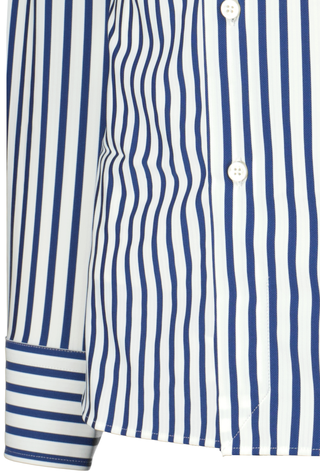 Blauw met wit gestreept overhemd voor heren van Xacus. De Active shirts van Xacus zijn gemaakt met exclusieve Japanse technologie, van nylon- en elastaangaren met flaneleffect en is een zeer ademend, 3D-stretchstuk dat snel droogt en comfortabel blijft in elke bewegingssituatie. Het combineert de elegantie van een formeel overhemd met een perfecte stijl, zonder concessies te doen aan de maximale functionaliteit.