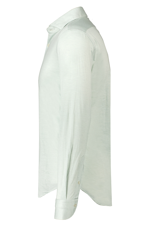 Lichtgroen overhemd voor heren van Xacus. Gemaakt van een fijne blend van katoen en tencel, zelfs al bestaat het volledig uit niet-rekbare vezels, is van nature elastisch in alle richtingen. Tencel is een volledig groene vezel afkomstig van eucalyptuscellulose, gewonnen uit FSC-gecertificeerde bossen.