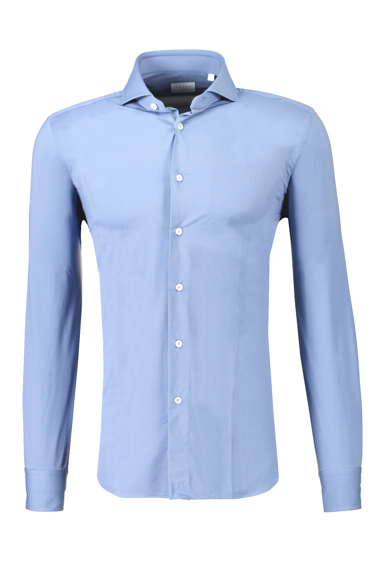 Lichtblauw active fit overhemd van Xacus. De Active shirts van Xacus zijn gemaakt met exclusieve Japanse technologie, van nylon- en elastaangaren met flaneleffect en is een zeer ademend, 3D-stretchstuk dat snel droogt en comfortabel blijft in elke bewegingssituatie. Het combineert de elegantie van een formeel overhemd met een perfecte stijl, zonder concessies te doen aan de maximale functionaliteit.