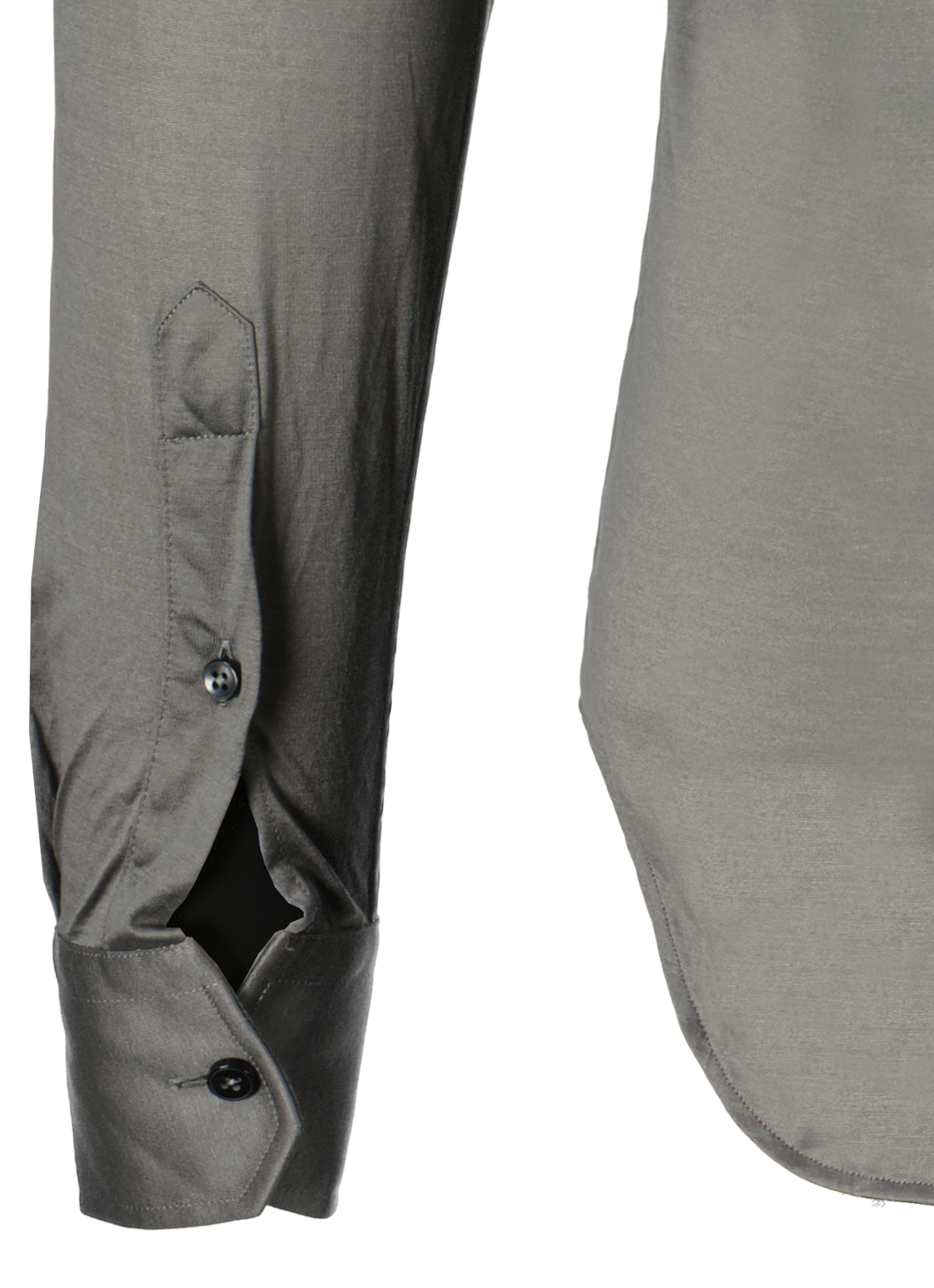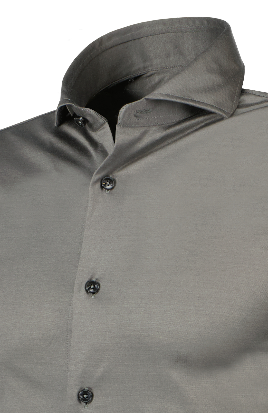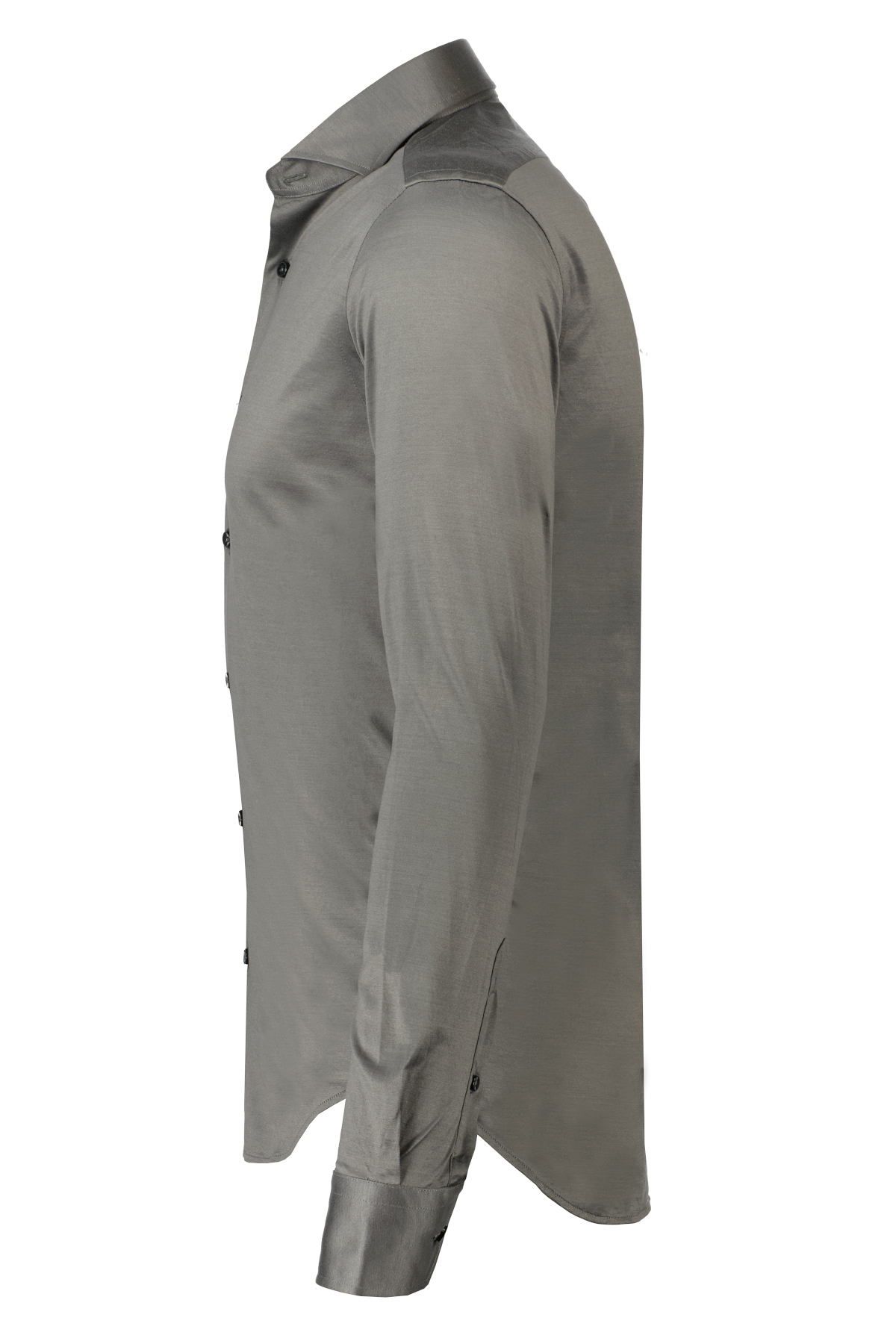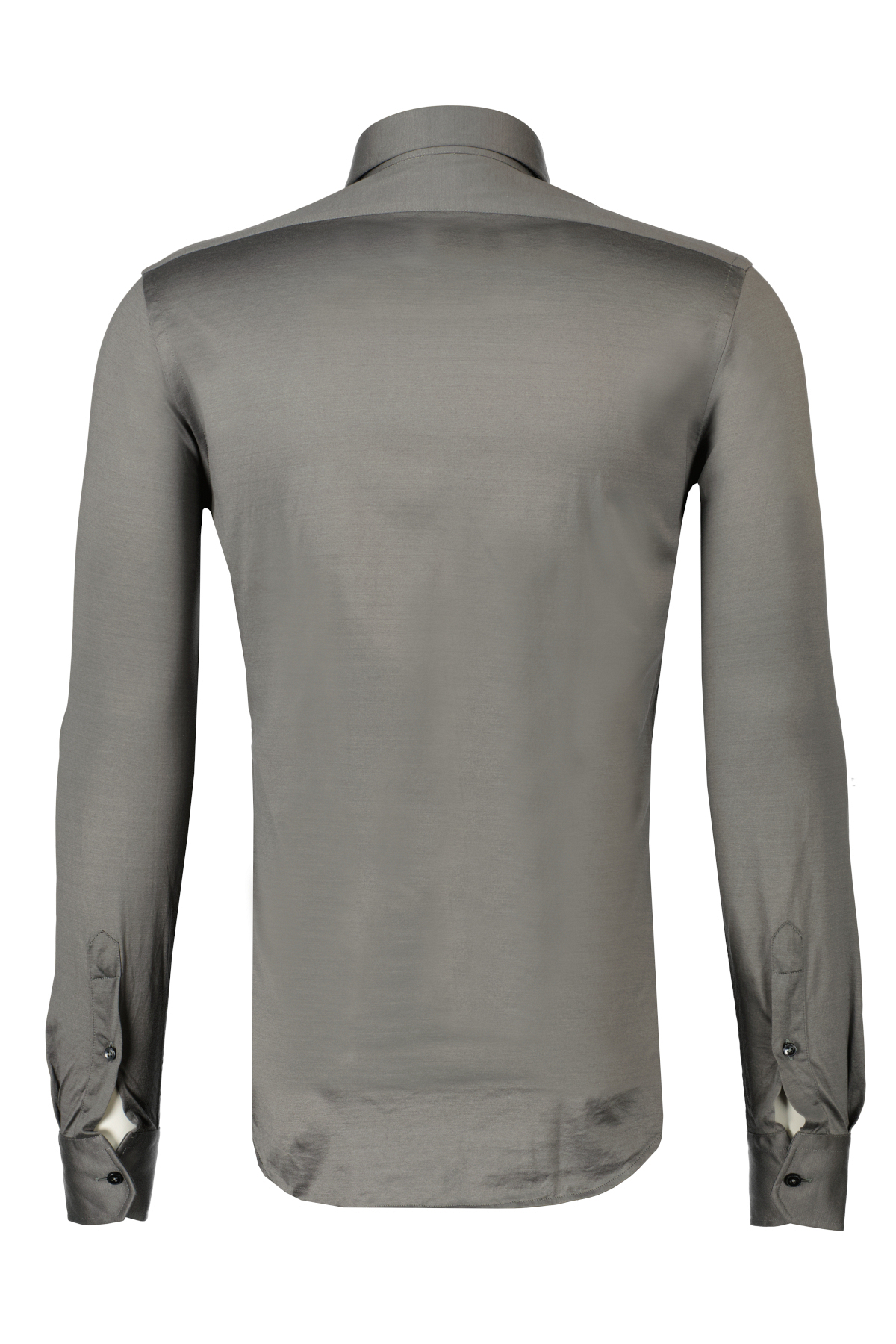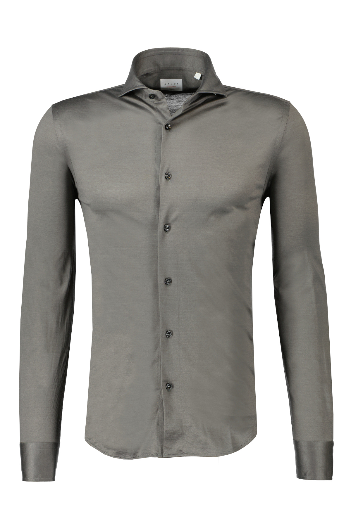 Grijs overhemd 'Knitted Shirt' voor heren van Xacus. De Knitted Shirts zijn, in tegenstelling tot andere stoffen, op een weefgetouw met inslag en ketting geweven. De Jersey is eigenlijk een tricotsteekstof, verkregen uit elke textielvezel, waarvan katoen, wol en viscose de meest voorkomende zijn. Dit proces zorgt voor een bijzonder lichte, elastische en zachte stof, waardoor het ideaal is voor het maken van herenoverhemden met een uitzonderlijk goede pasvorm die met het lichaam meebeweegt voor maximaal comfort.