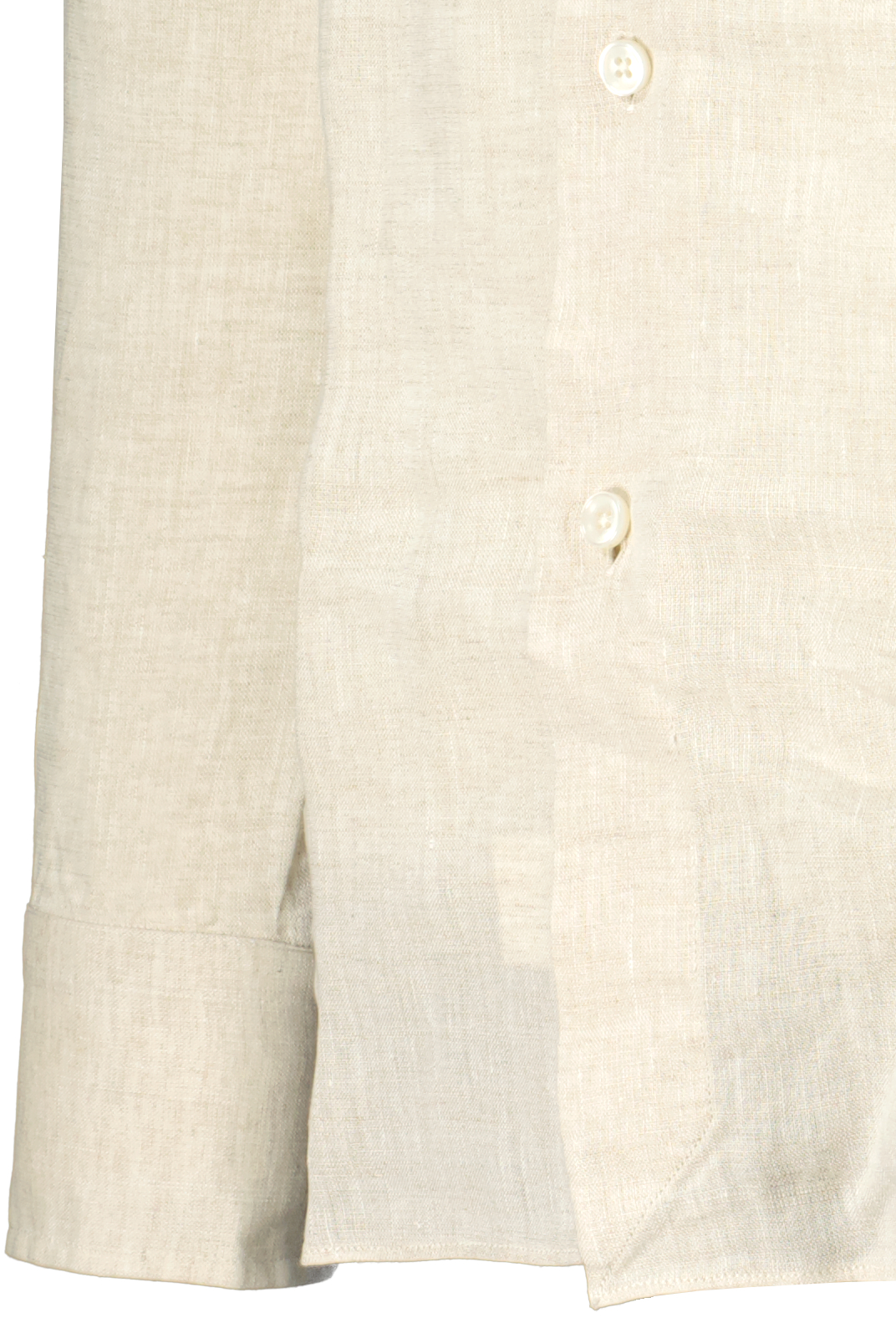 Beige linnen overhemd voor heren van Xacus. Casual, garment-washed overhemd voor een sportieve, casual look. De cutaway kraag en ronde manchetten zijn zachter en minder geconstrueerd. Door de linnen stof is het overhemd ademend, geeft thermisch comfort en heeft stevige garen.