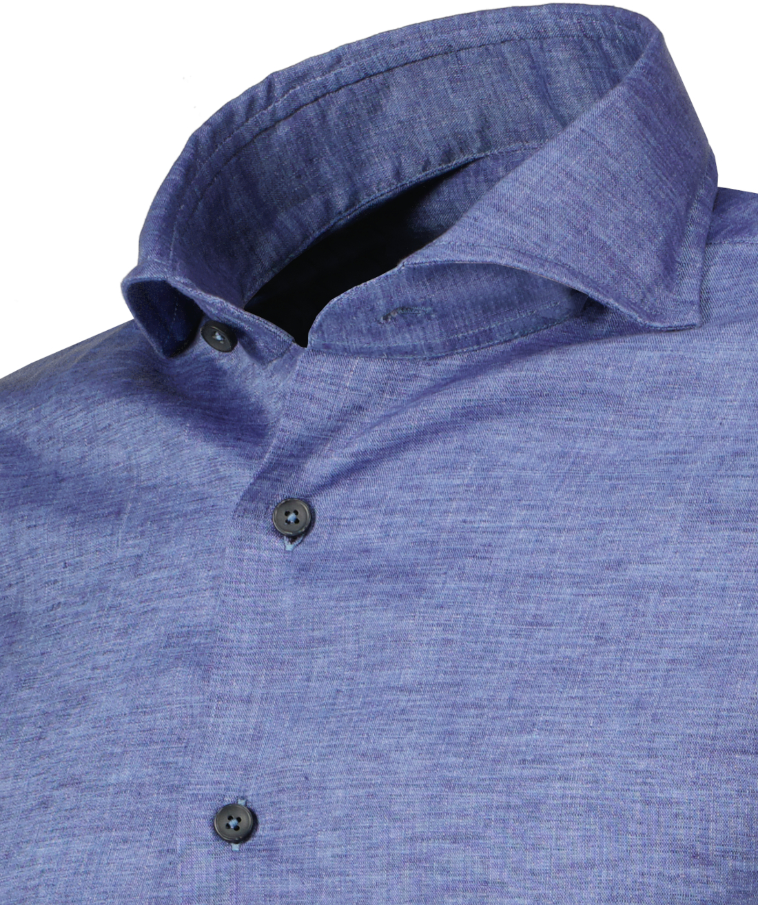 Blauw linnen overhemd voor heren van Xacus. Casual, garment-washed overhemd voor een sportieve, casual look. De cutaway kraag en ronde manchetten zijn zachter en minder geconstrueerd. Door de linnen stof is het overhemd ademend, geeft thermisch comfort en heeft stevige garen.