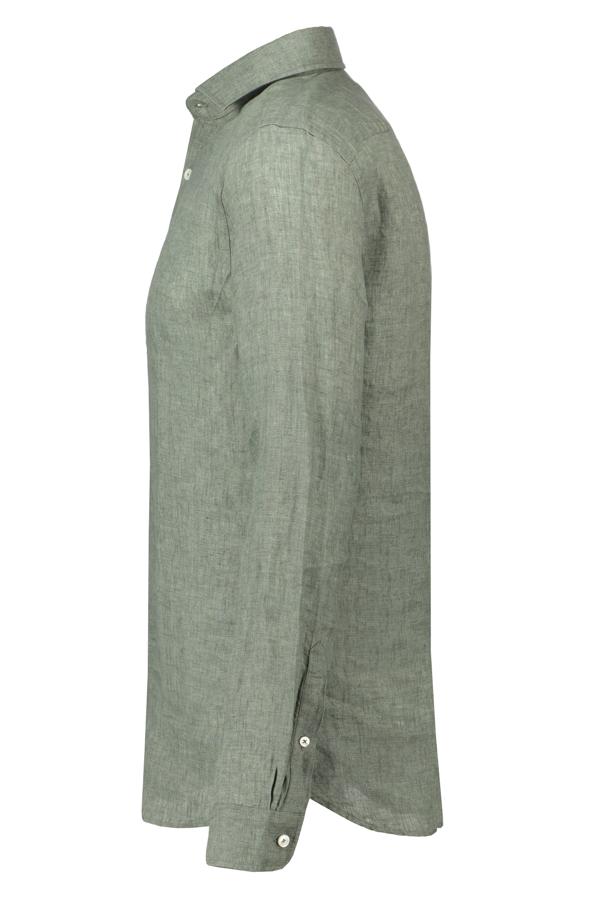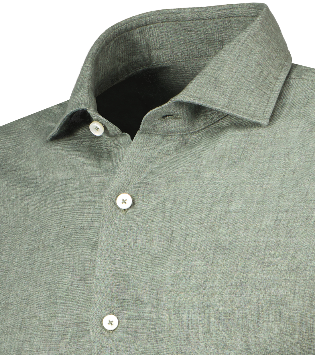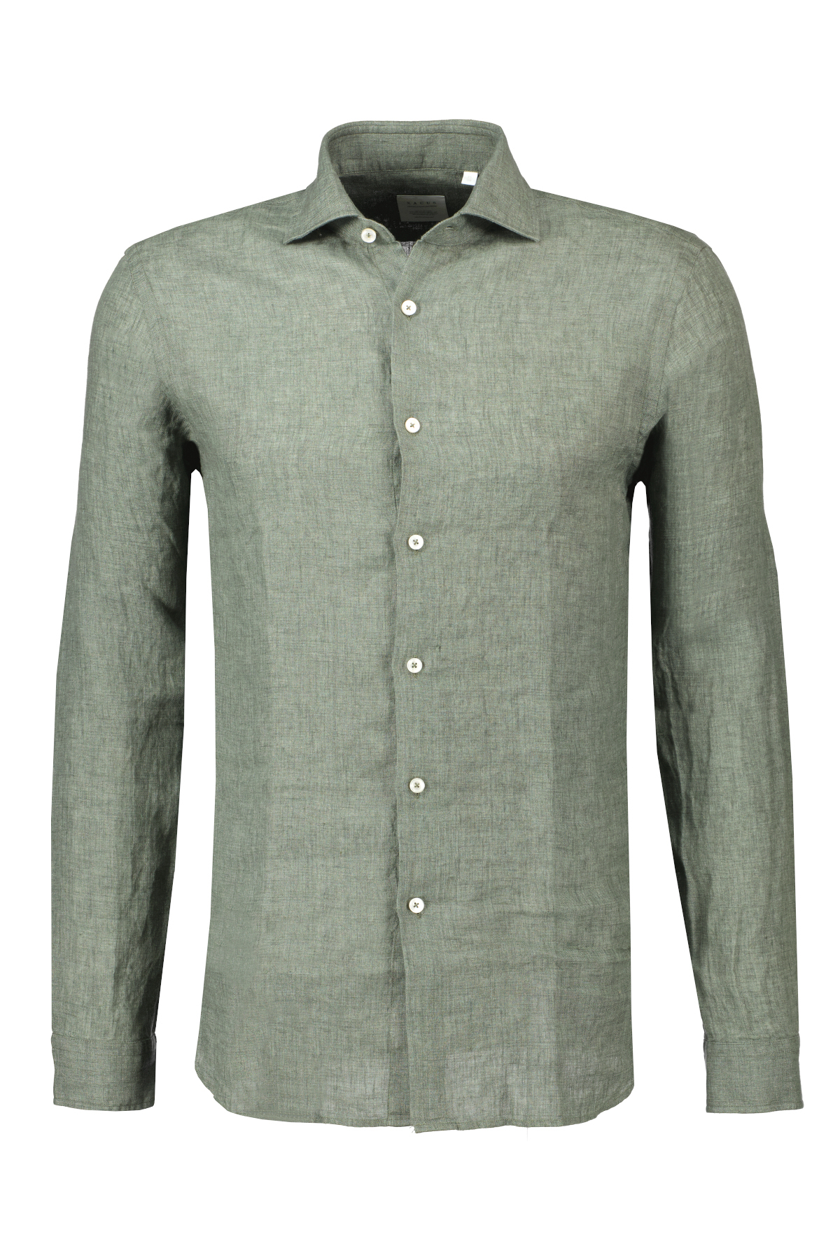 Groen linnen overhemd uit de Legacy Collection van Xacus. Casual, garment-washed overhemd voor een sportieve, casual look. De cutaway kraag en ronde manchetten zijn zachter en minder geconstrueerd. Door de linnen stof is het overhemd ademend, geeft thermisch comfort en heeft stevige garen.